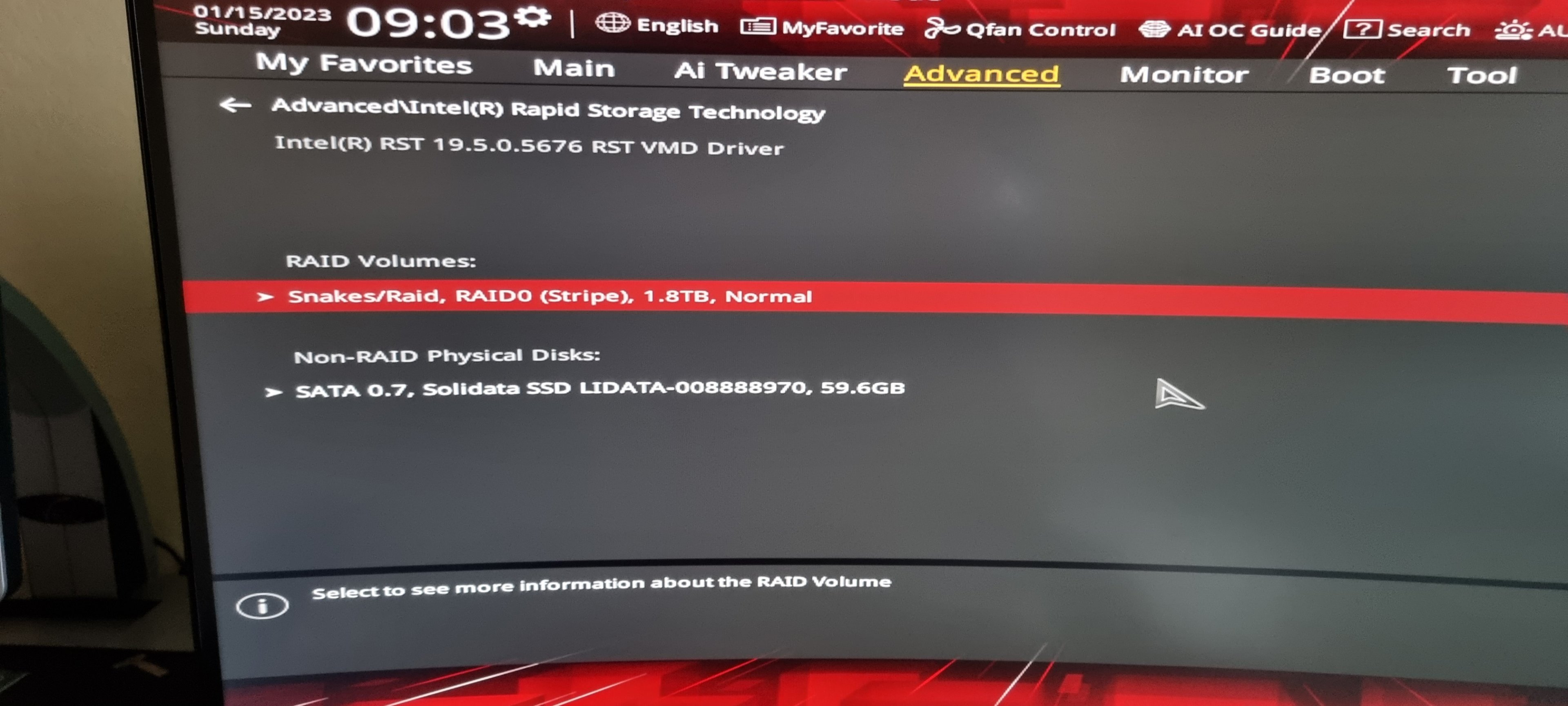 Hatte die Hoffnung dass man im Bios die wieder als Raid zusammen "schließt", was er aber nach der aktivierung vom VMD automatisch erkannte.