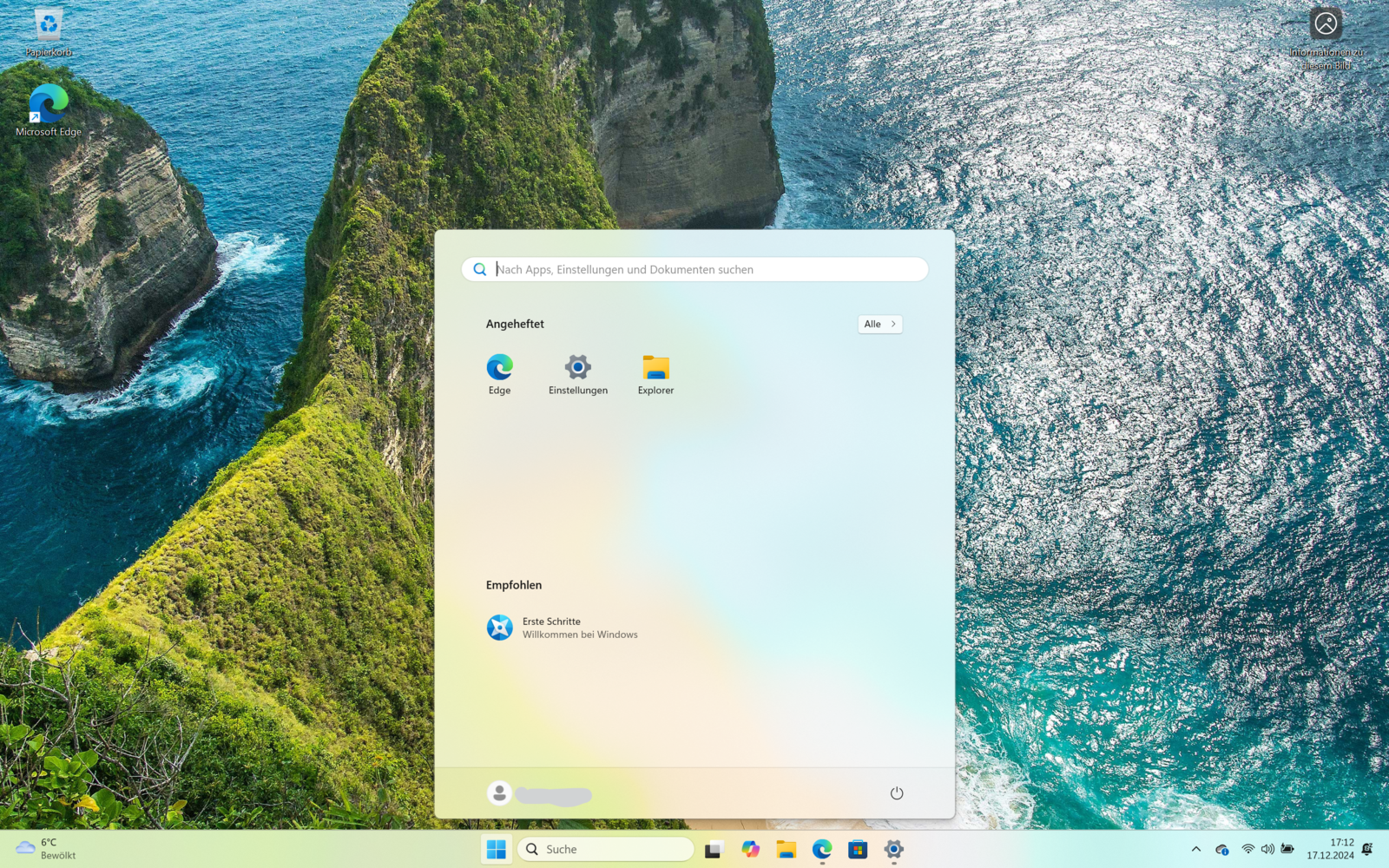 Habe es online installiert und mit einem Microsoft Account eingeloggt, sofort nach dem hochfahren ist ja das Startmenü offen,