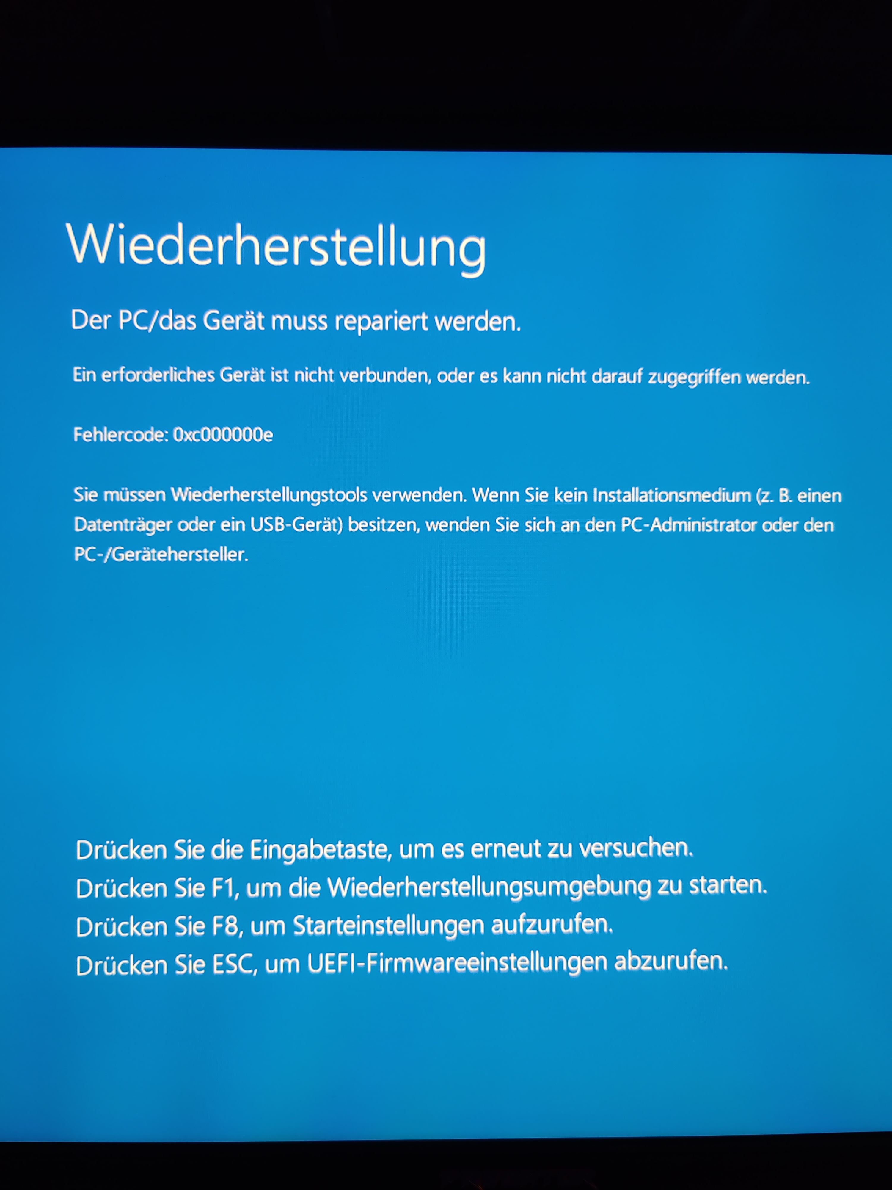 Dann halt über ein Windows Install USB versuchen, beim booten des Windows Installs direkt selber Fehler.