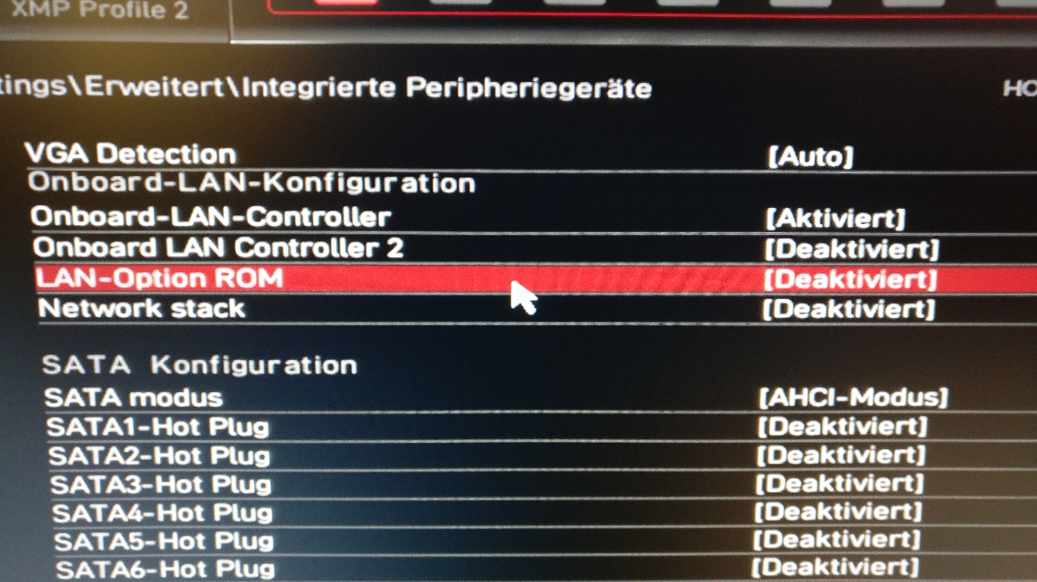 Es ist nicht möglich, ein neues Netzwerk einzurichten. Netzwerkerkennung ist eingeschalten. Internet über WLAN funktioniert. Im BIOS sind ebenfalls alle Peripherals enabled.