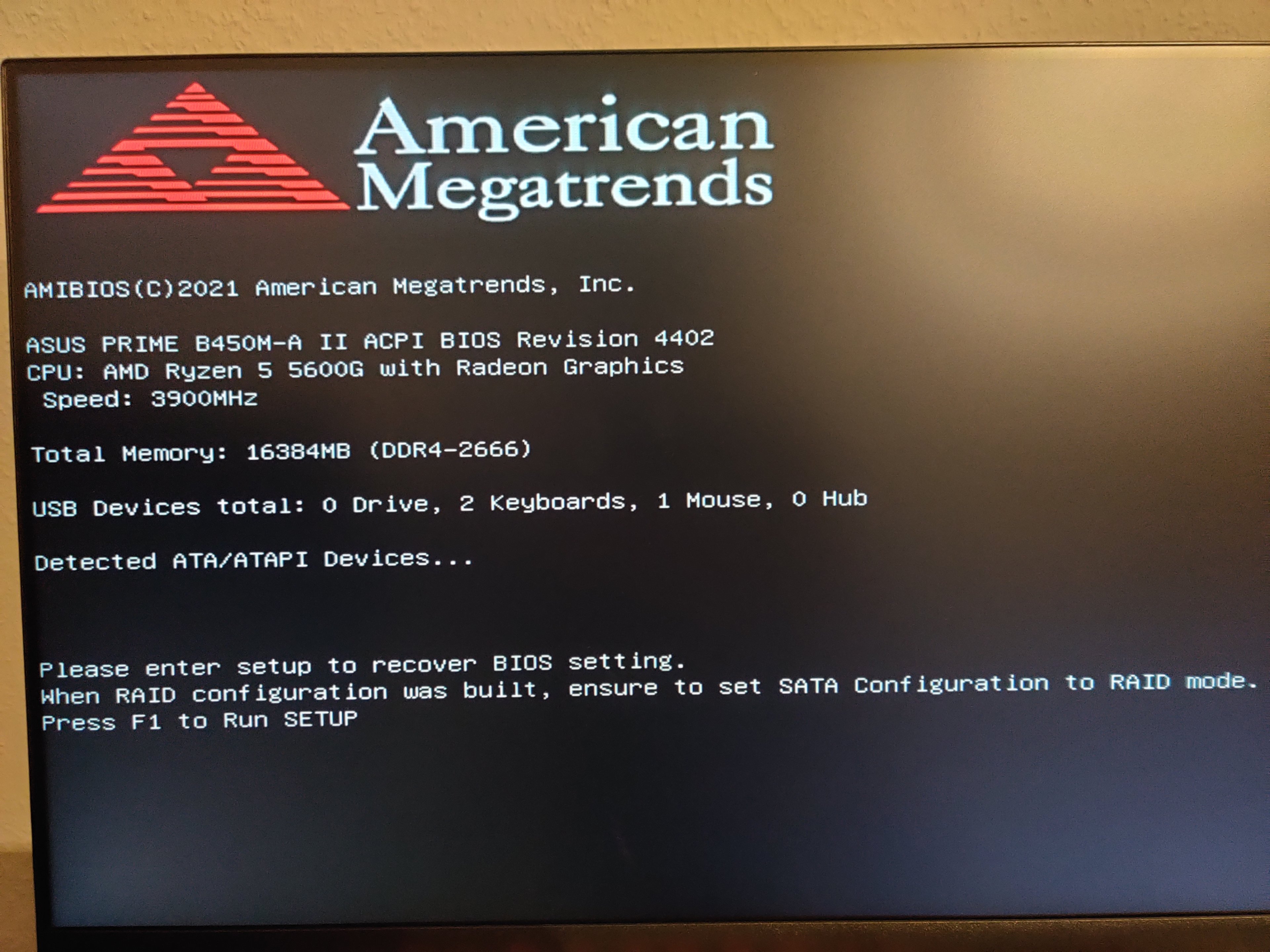 Jedoch startet seitdem das System nicht mehr, es kommt nur diese Fehlermeldung (siehe Anhang). Beim ersten Start stand noch was von "CPU Wechsel wurde erkannt", jetzt nicht mehr, kommt immer dieser Fehler. Eigentlich simpel zu lösen aber keiner der Tasten meines Keyboards funktionieren (obwohl sie leuchten), selbst beim Bootversuch die BIOS Taste nicht (F2). Die Tastatur wird aber anscheinend erkannt lt. Dem Fehlerscreen.