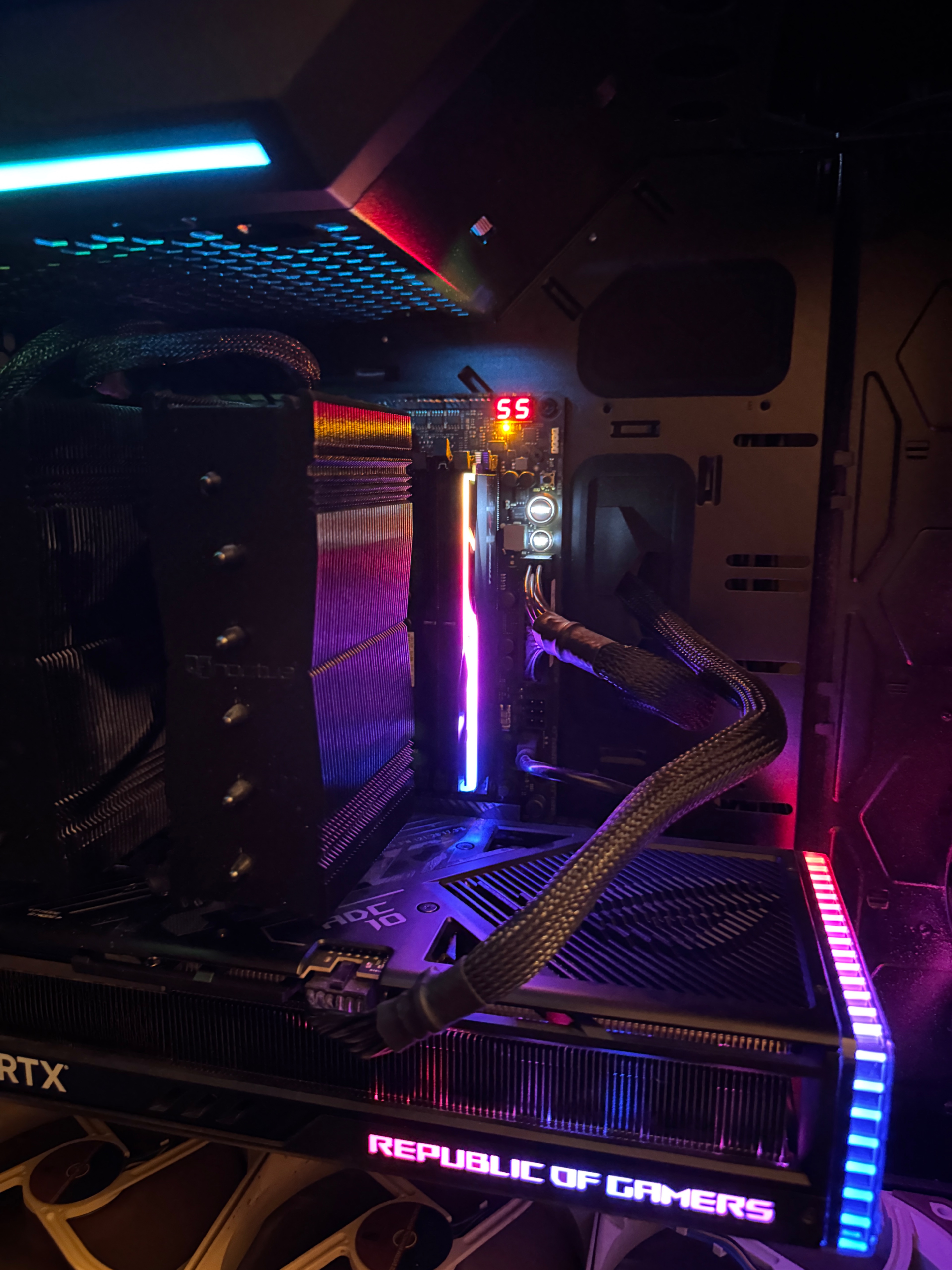 Die RGB Leuchte von RAM und Graka und Board laufen.