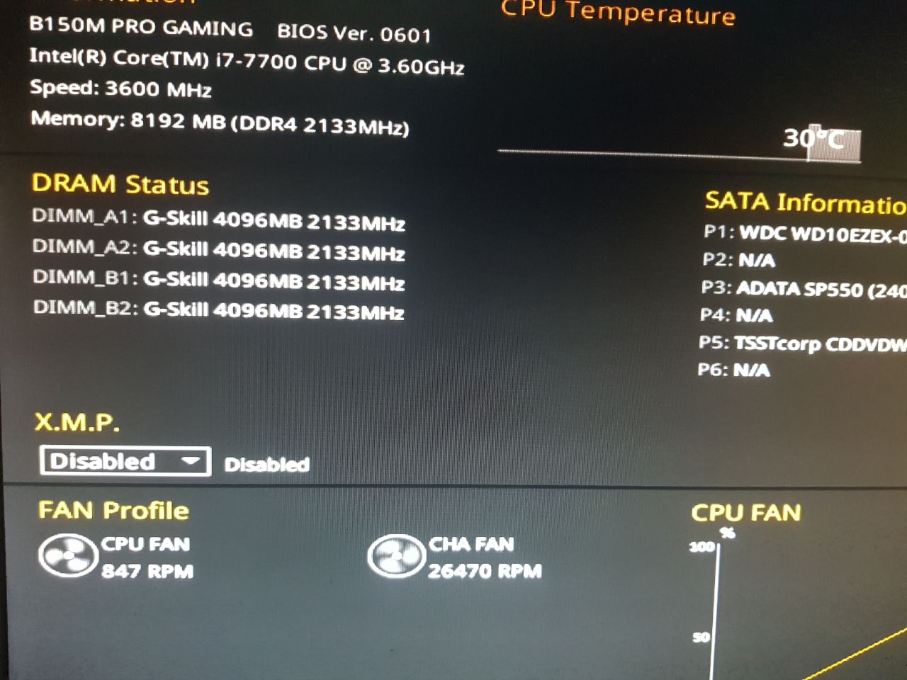 Mobo: B150M Pro gaming (aktuellstes BIOS 0601)