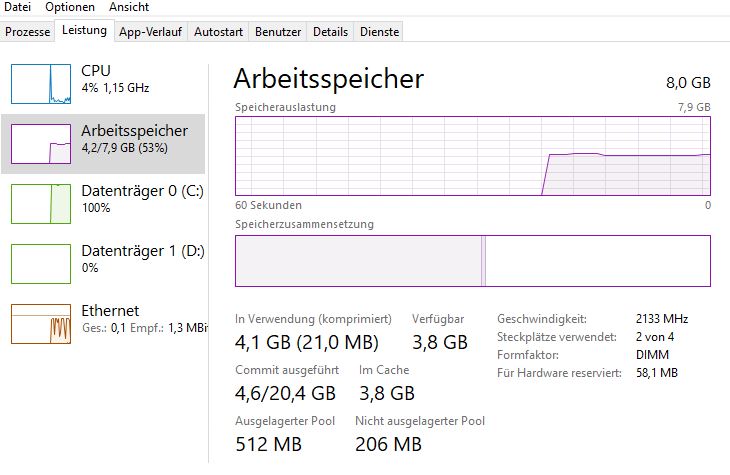 5. Bei PC --> Eigenschaften wird angezeigt RAM: 8 GB, beim Taskmanager ebenfalls 8 GB aber bei CPU-Z 16 GB