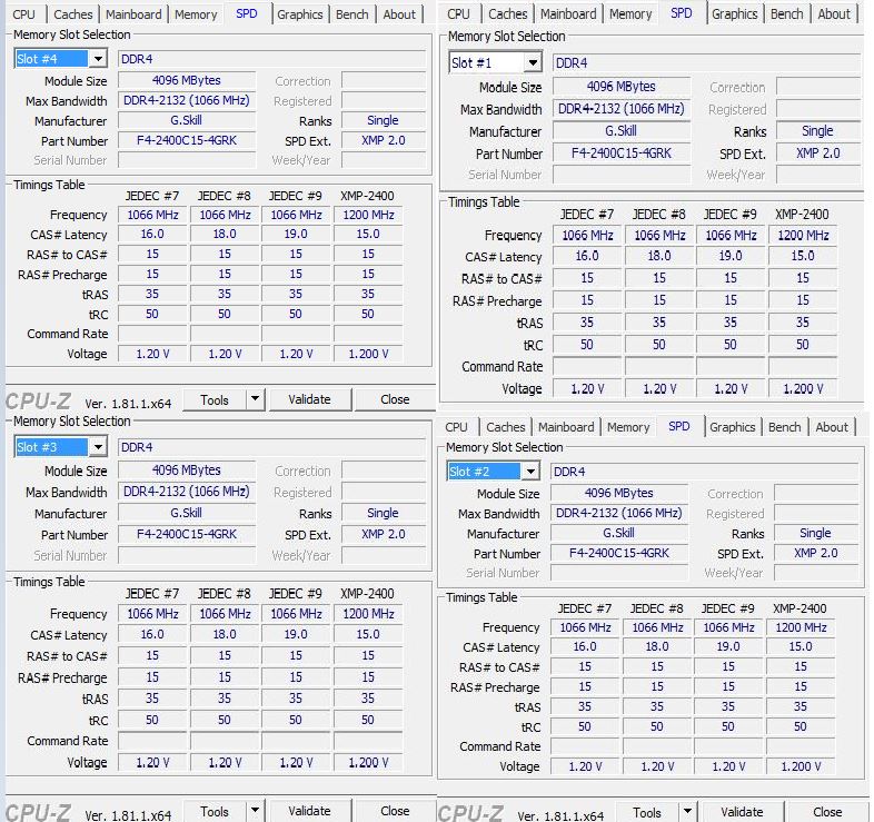 RAM: 4x4 GB G.Skill Ripjaw DDR4 2133 MHz F4-2400C15-4GRK