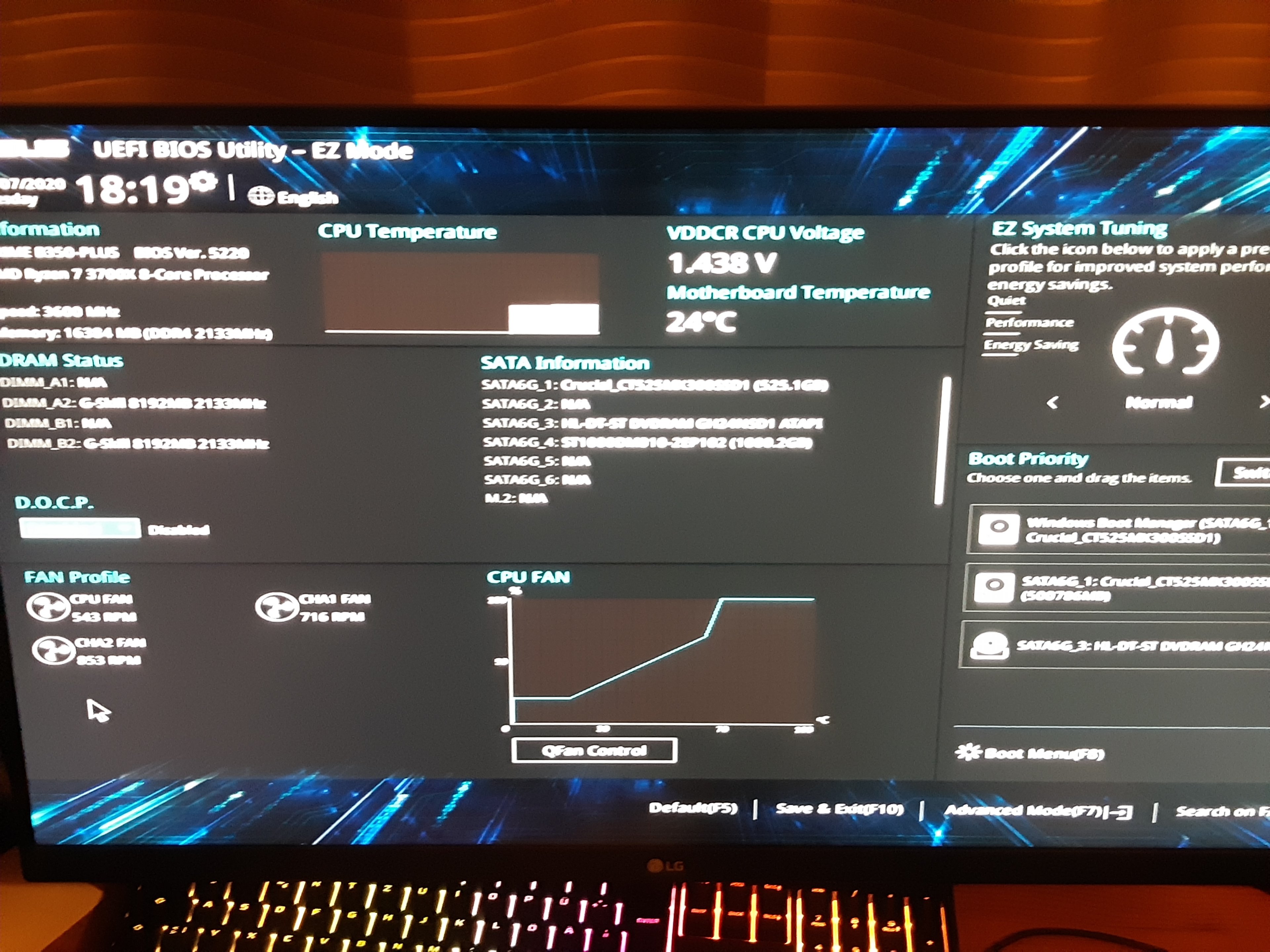 Habe mal das BIOS abfotografiert, mir ist fürs erste aber nichts ungewöhnliches aufgefallen.