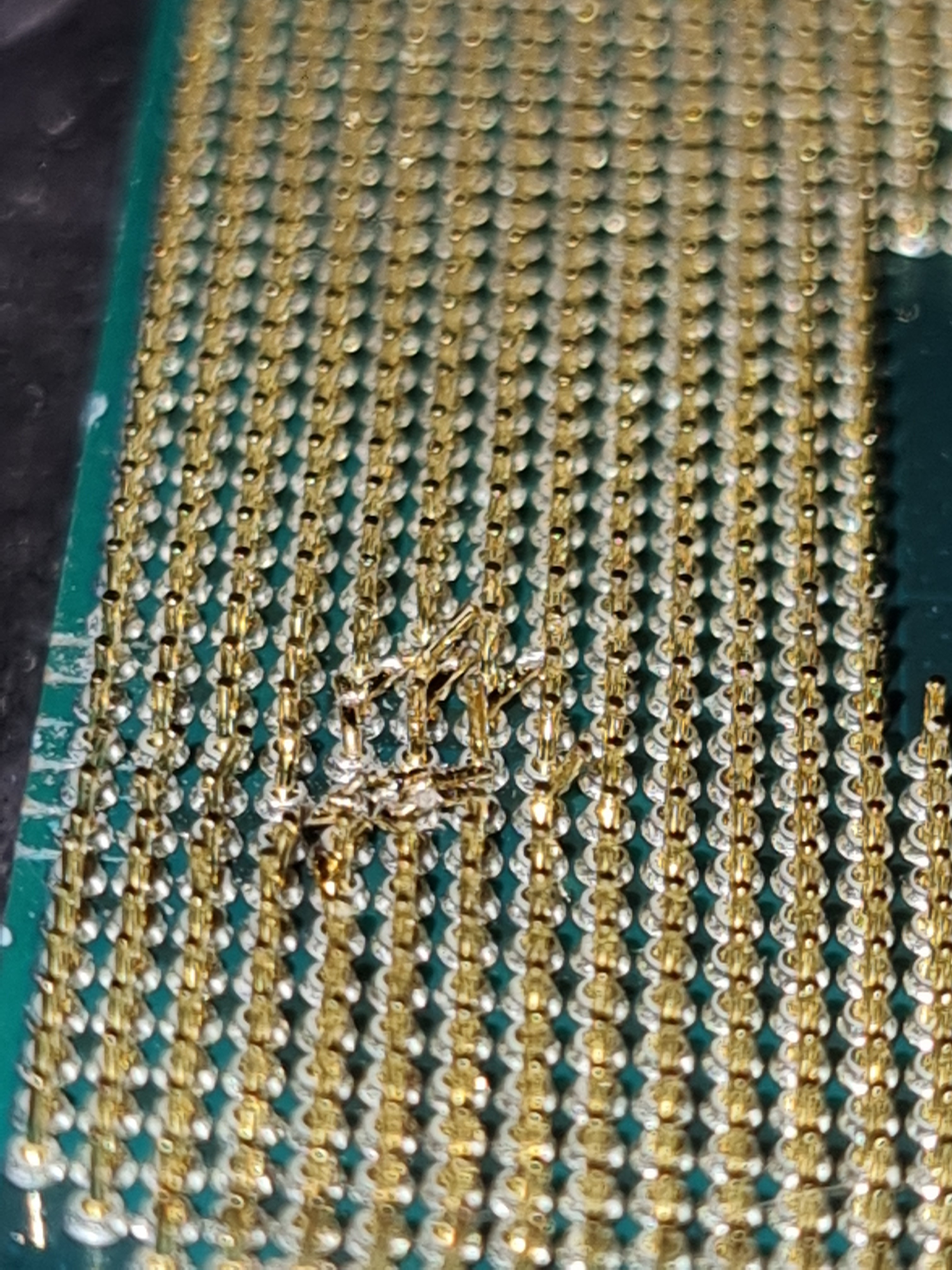 Ich hab mal ein Bild von der CPU, sieht das irgendwie noch reparabel aus? Oder könnte ein Computer Shop die wieder hinkriegen oder zurück zum Privatverkäufer Artikel nicht wie beschrieben?