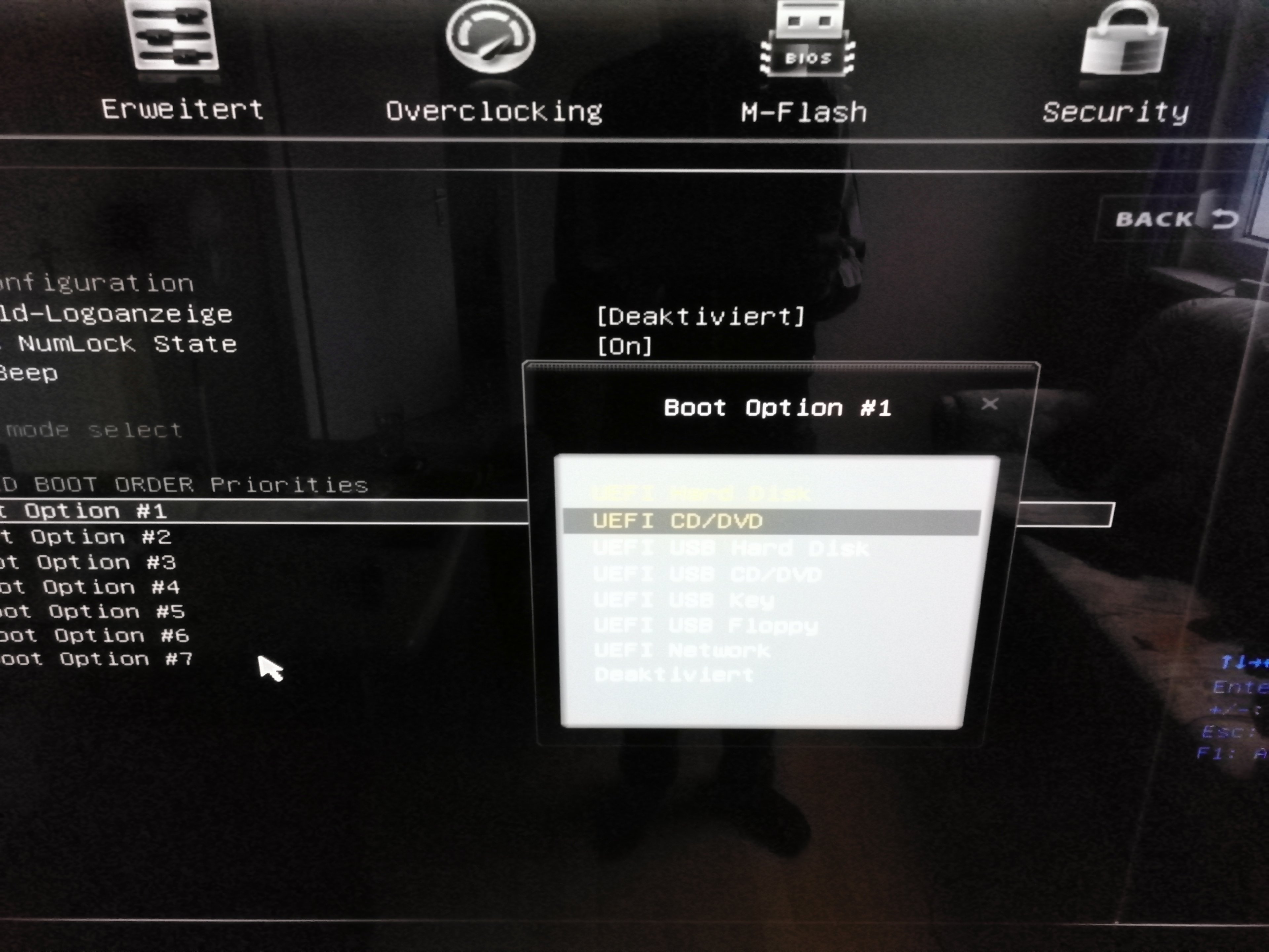 - Alle anderen Bootoptionen außer der Option #1 deaktivieren! Was hast du bei Bootoption #1 alles zur Auswahl?