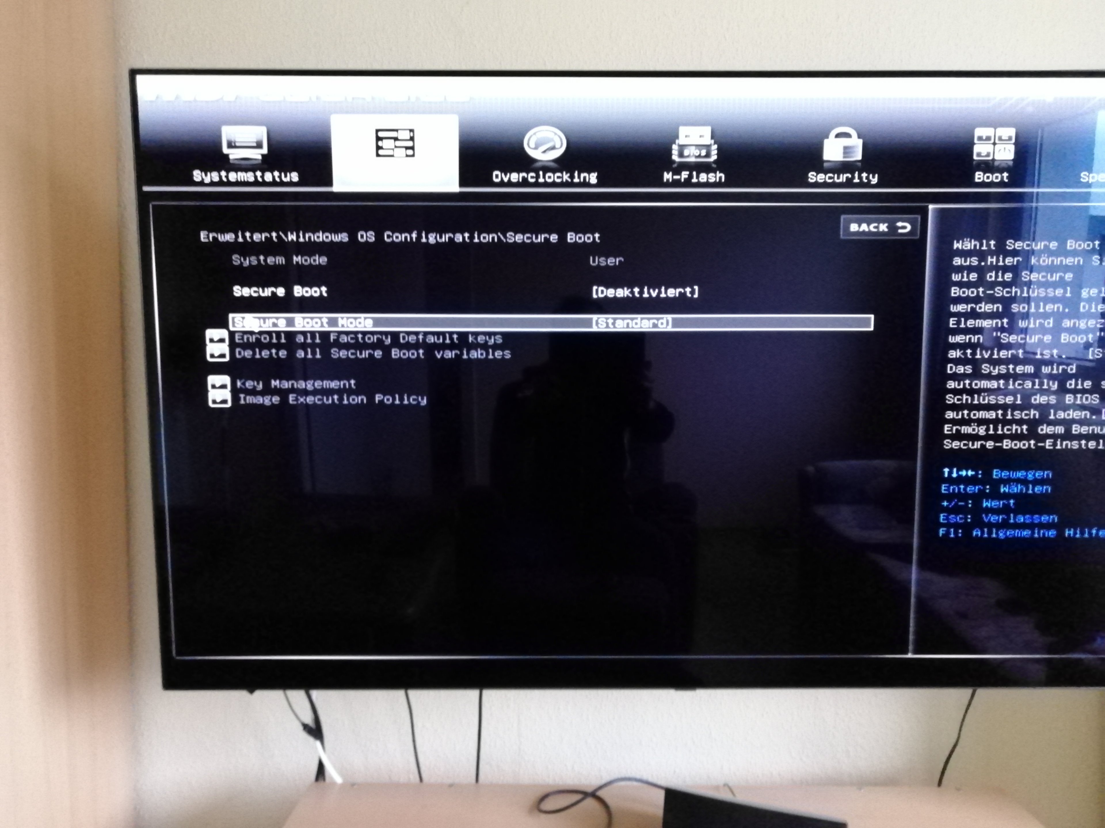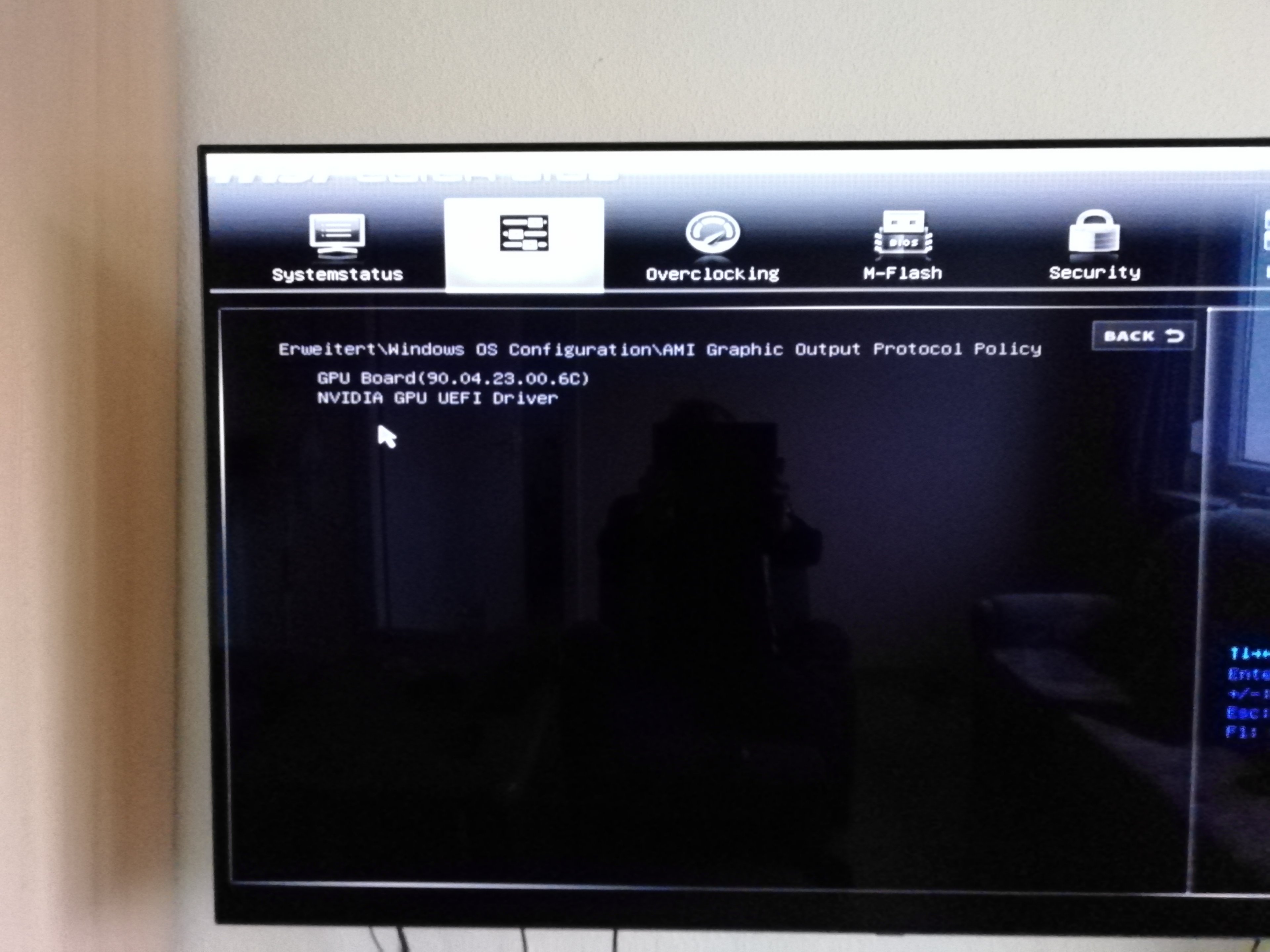 Dann schau mal nach, was du dazu unter Erweitert\ Windows OS Configuration ändern kannst!Ob Winodows im UEFI-Modus installiert worden ist weiß ich nicht...