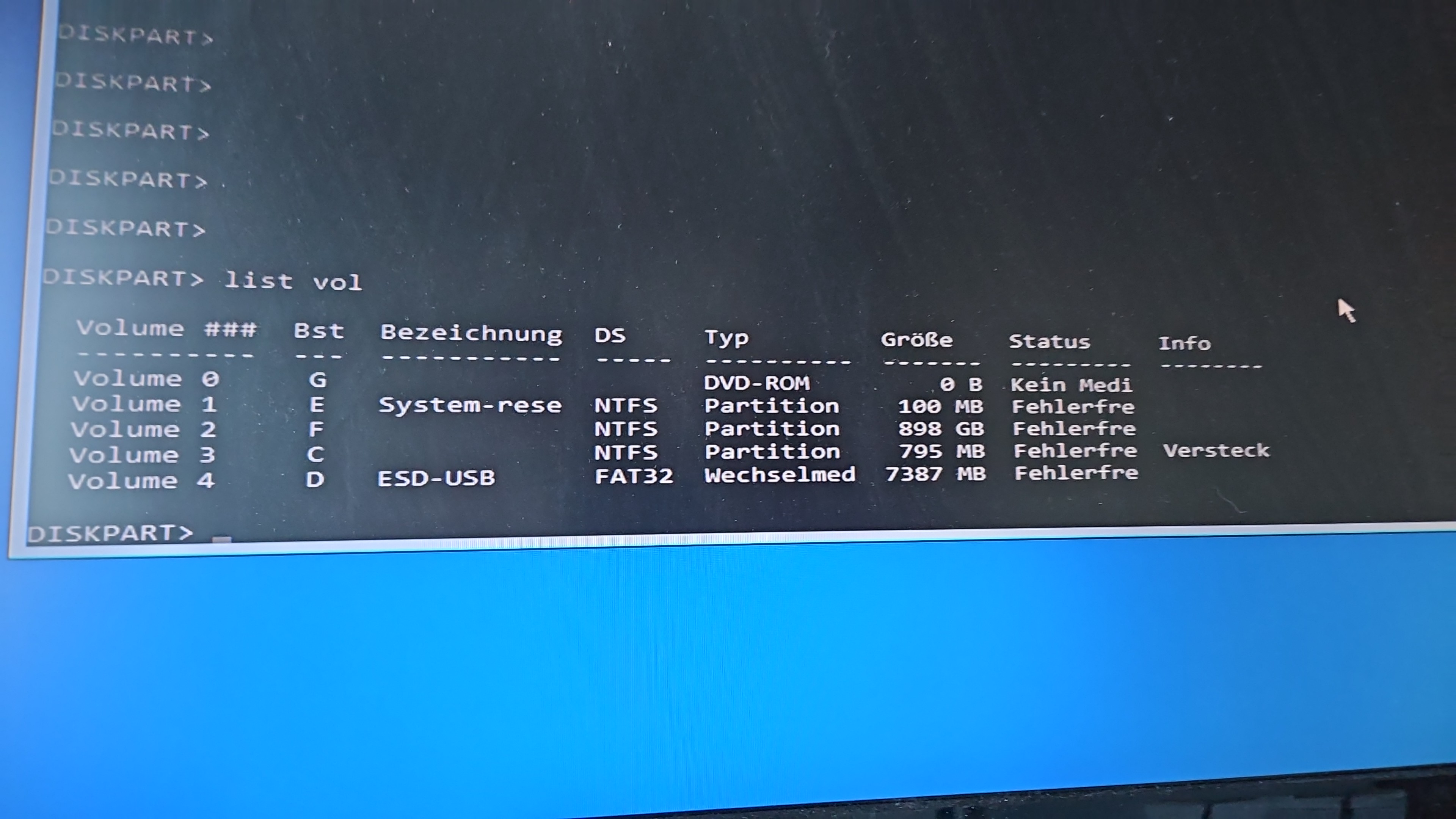 Am neuen PC wird die SSD per Windows10/11-Installationsmedium und diskpart vorbereitet: