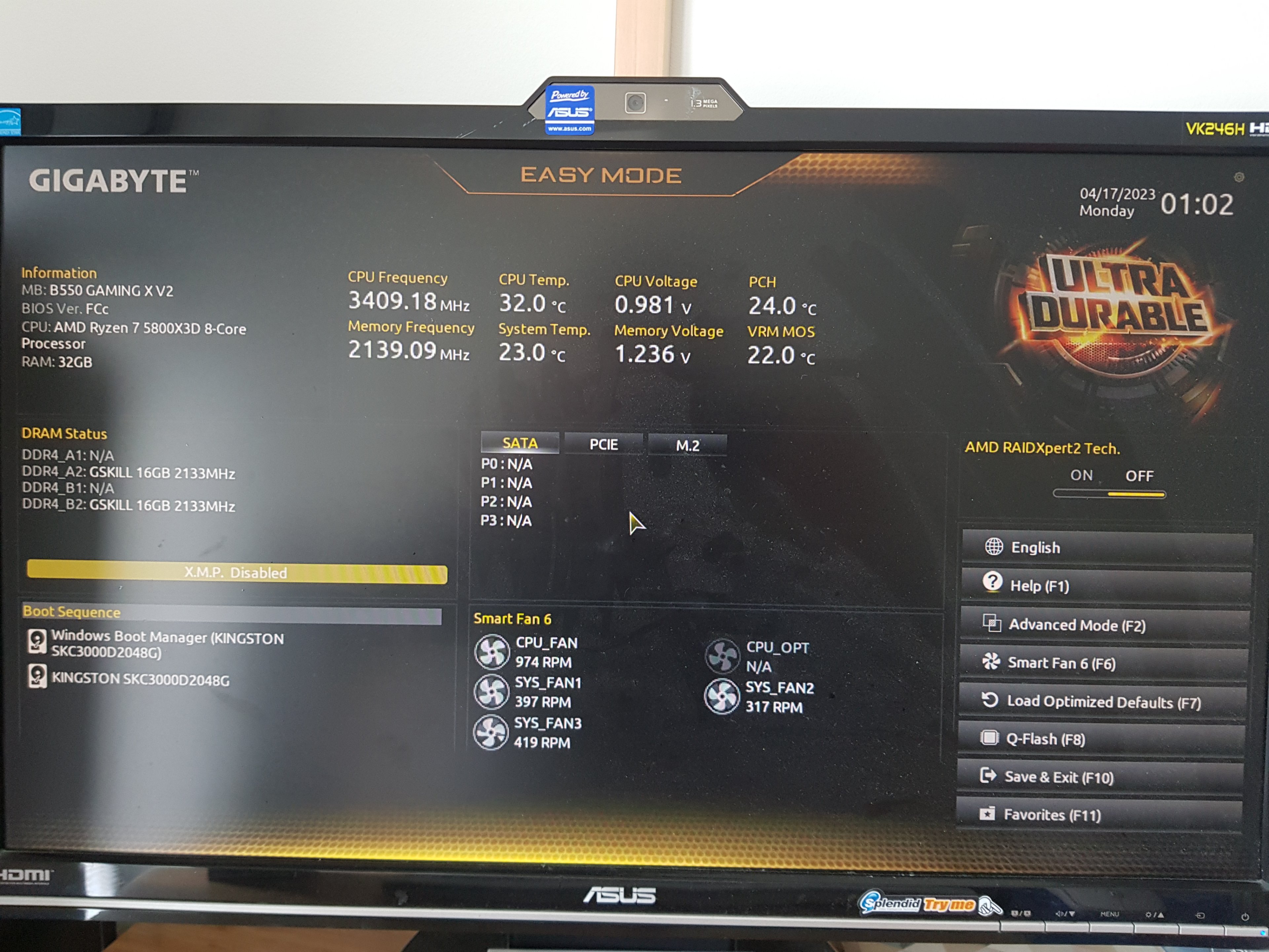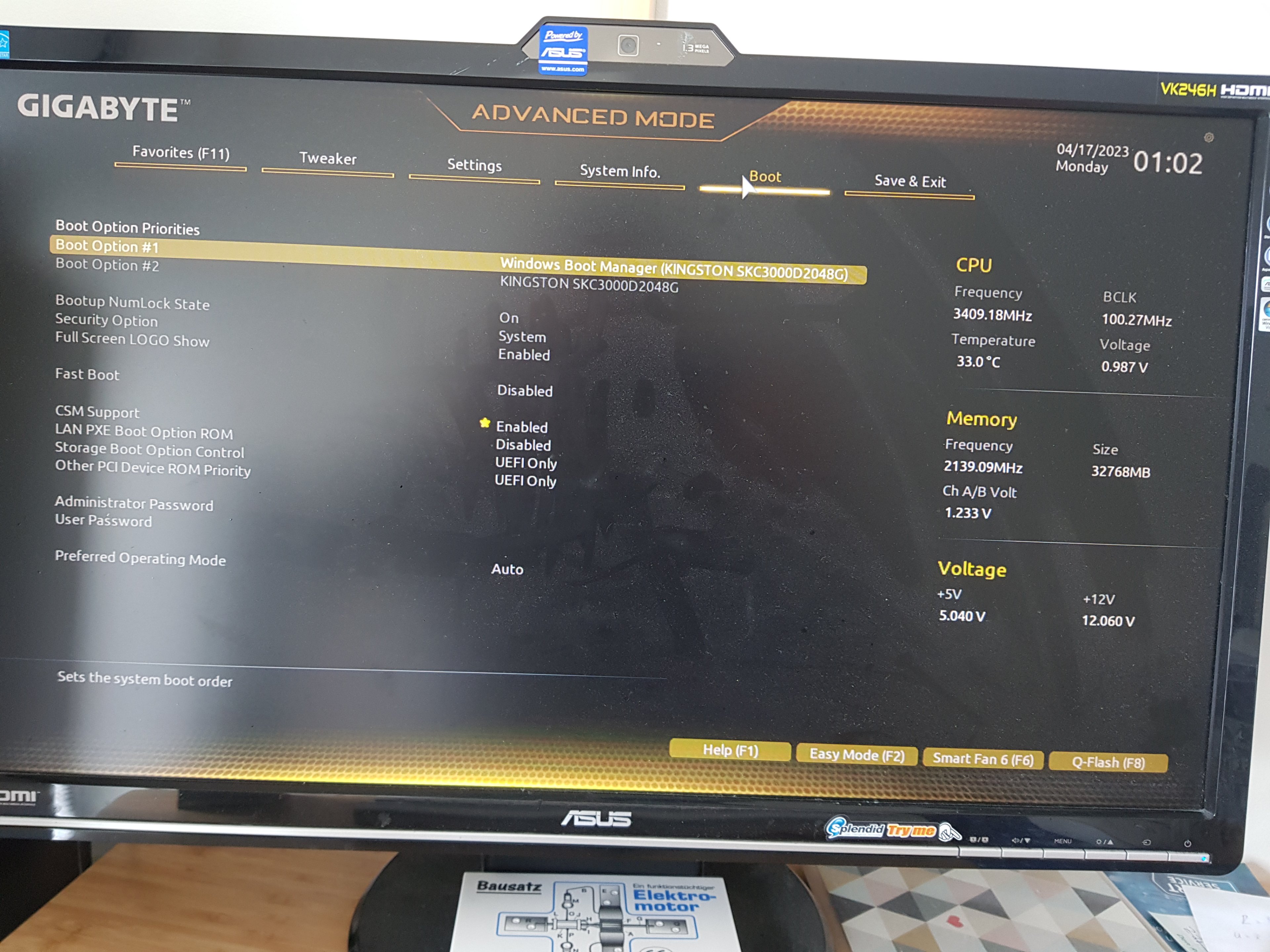 Wähle ich eins davon aus hängt er sich beim Booten wieder auf.