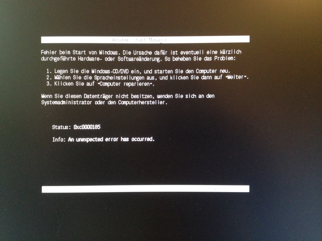 Error Code: 0xc0000185