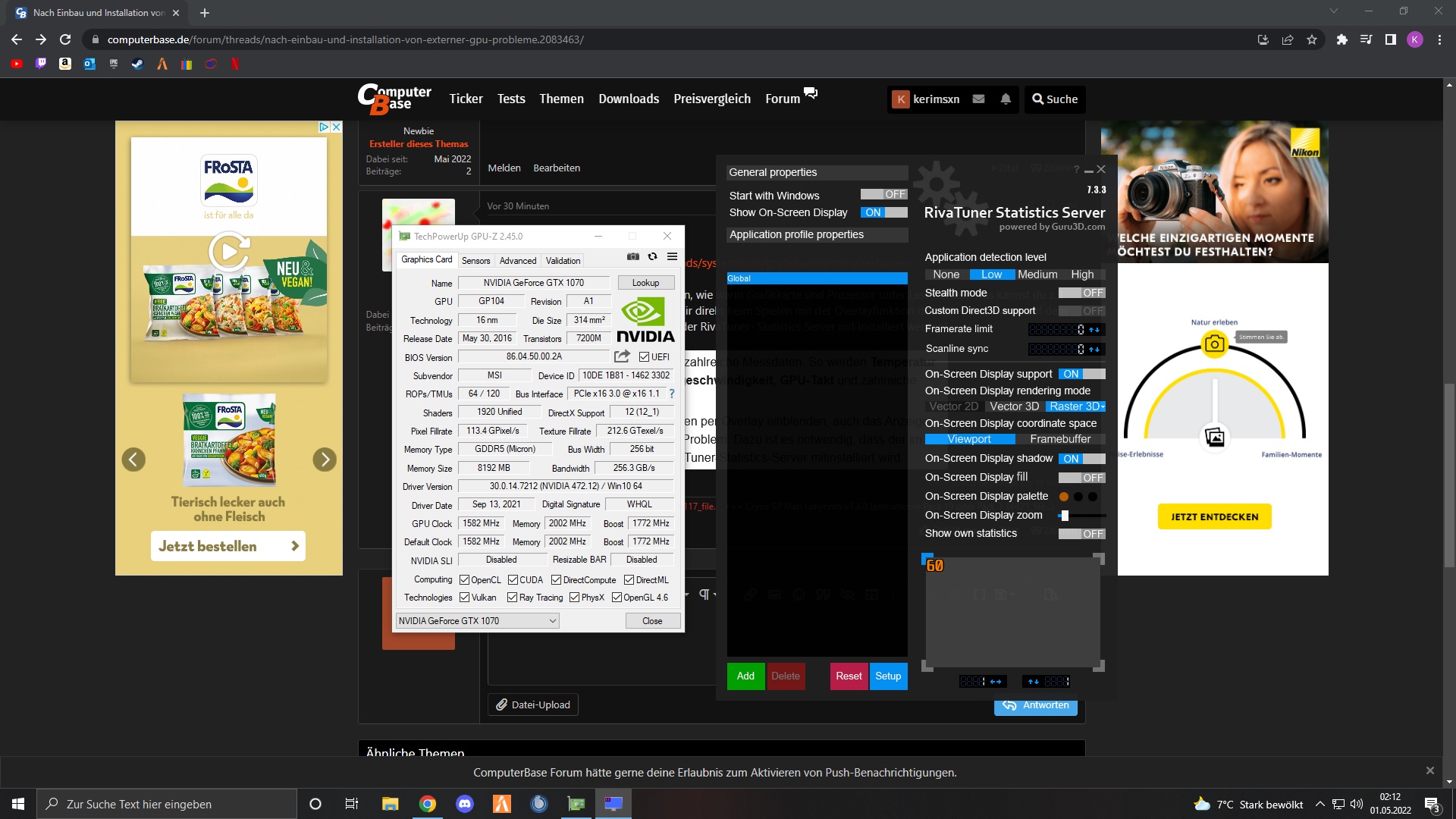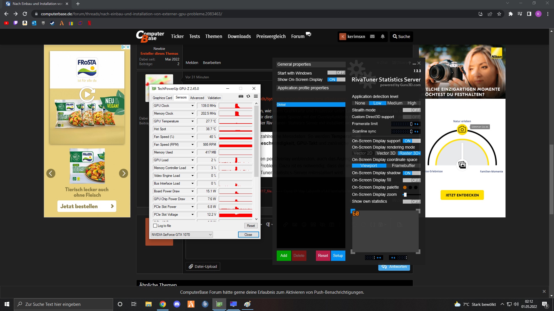 Nachdem ich die GPU eingebaut habe, lief erstmal alles in Ordnung.(Zumindest hat es so auf mich gewirkt) Habe mir dann die Treiber runtergeladen und installiert. Die OnBoard GPU ist deaktiviert.