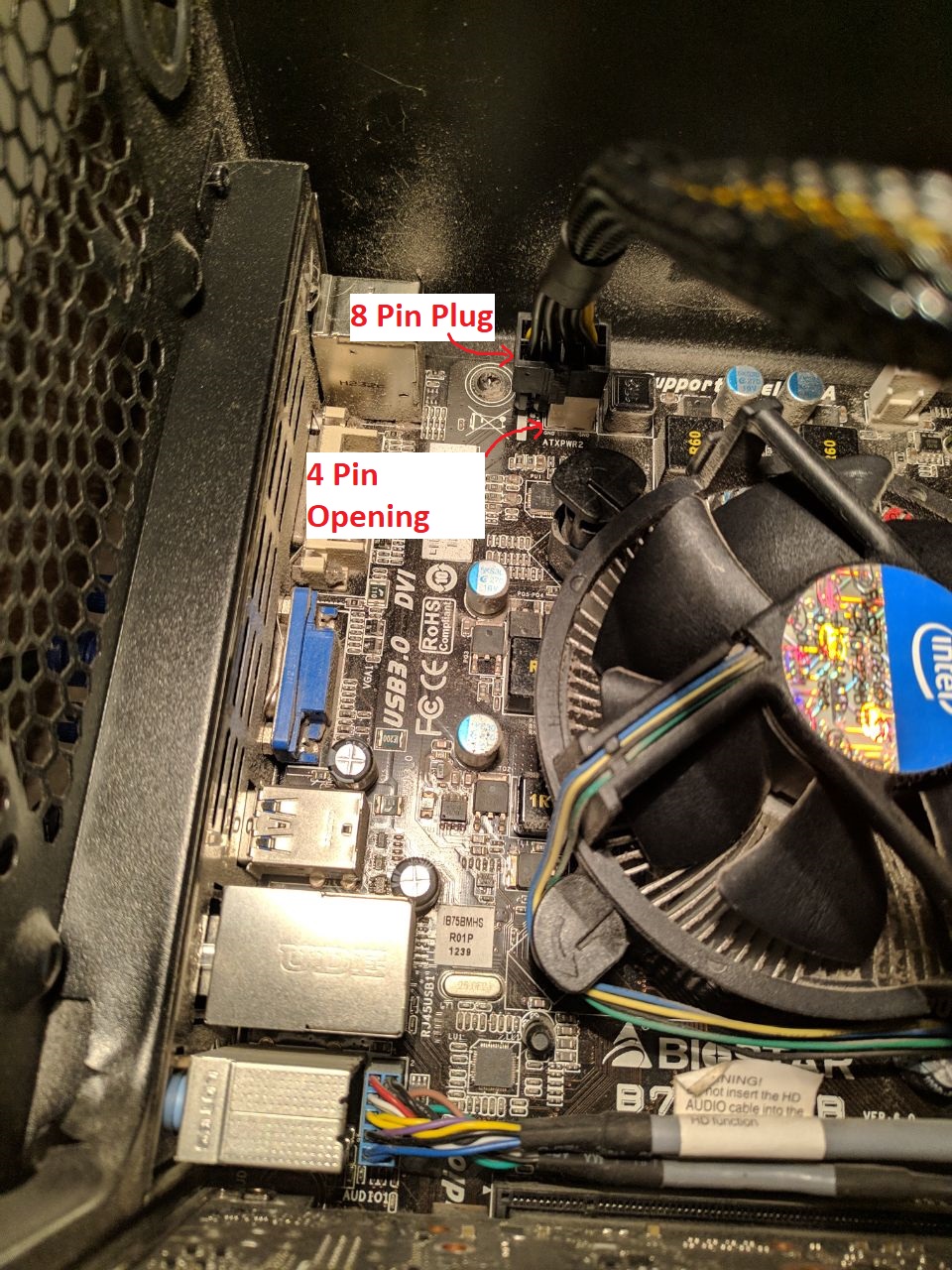 Mein Gedanke ist jetzt dass es daran liegen könnte dass ich einen 8pin Stecker in den 4pin CPU eingang gesteckt habe, aber das dürfte doch eigentlich kein Problem sein, vor allem weil es am Tag vorher ja noch einwandfrei funktioniert hat??