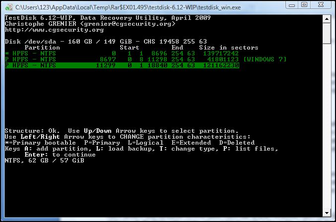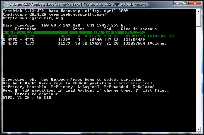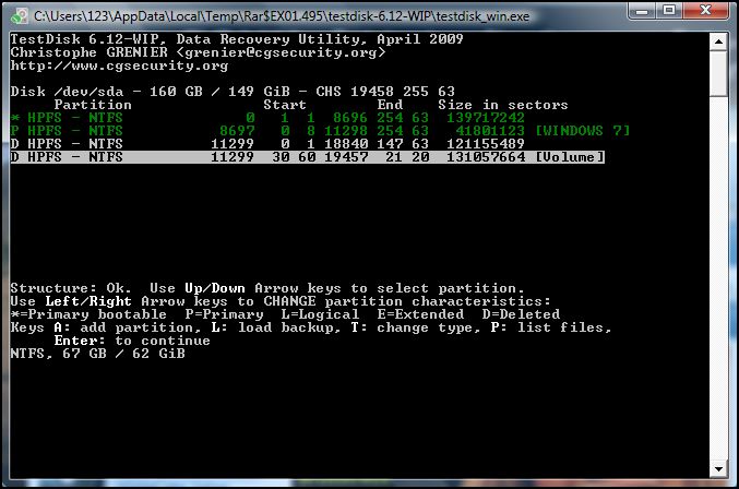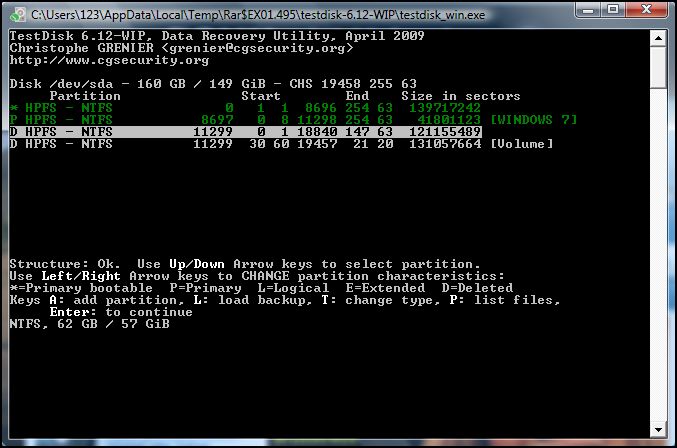 Ich komme immer zu dem selben Ergebnis. Er zeigt mir zwar einmal die "alte, verlorene Partition mit allen Daten" an, zumindest die Größe davon, denn der Name, den die Partition vorher hatte, erscheint nie!!! So dann zeigt er mir auch die "neue, formatierte Partition" an, auch mit Namen, aber die brauche ich ja nun nicht wirklich... Diese is auch etwas größer, da ich gleich beim formatieren die zuvor gewollten 5 Gig da mit drauf gepackt habe, also erscheint dann sowas wie 67 GB / 62 GiB... die Partition mit den Daten hatte vorher 57 GB, wie gesagt wollte ich ja 5 GB mehr drauf packen und das wären dann demnach 62 GB gewesen. Diese zeigt mir Testdisk auch an, und zwar so: 62 GB / 57 GiB