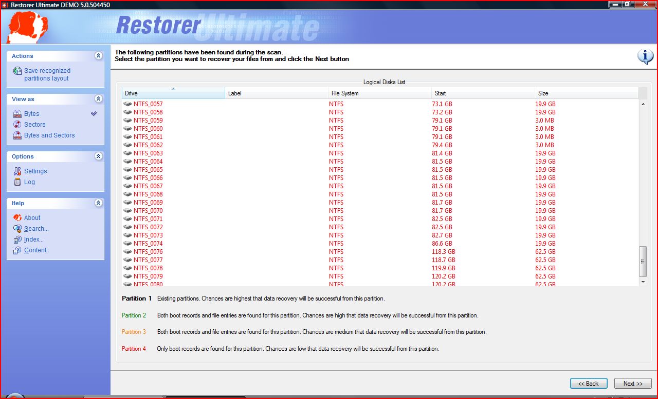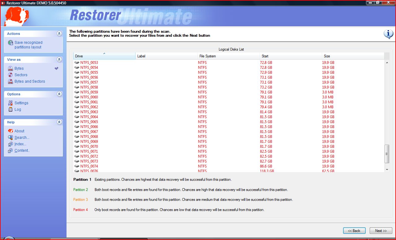 So nun stehe ich also da, nun könnte ich die Partition wieder herstellen, in den Zustand nach Formatierung, was mir aber wenig nützt, da ich ja meine Daten wieder haben will.