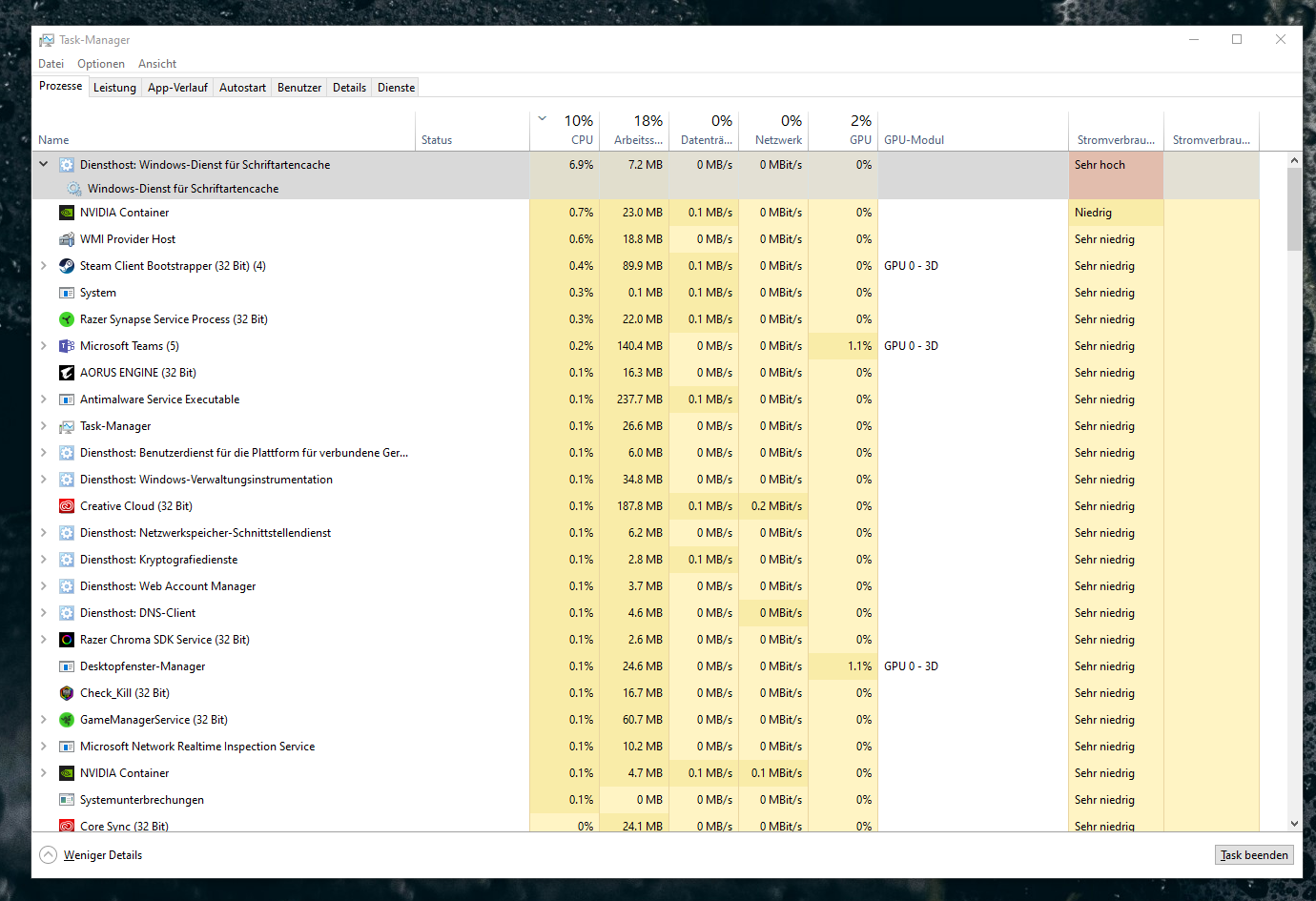 Habe heute einen neuen Computer (i9-9900K, 32GB RAM, 970 Evo SSD, RTX2080Ti) zusammen gebaut und die aktuellste Version von Windows 10 installiert.
