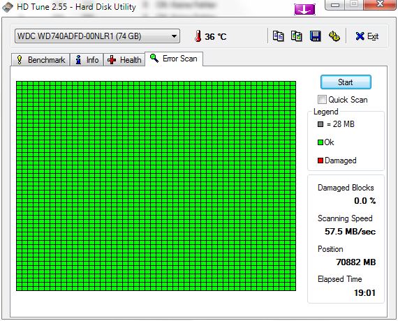 Ich hatte meine Systemplatte (WD740ADFD) wie folgt partitioniert: 50 GB (System) und 20 GB (Daten).