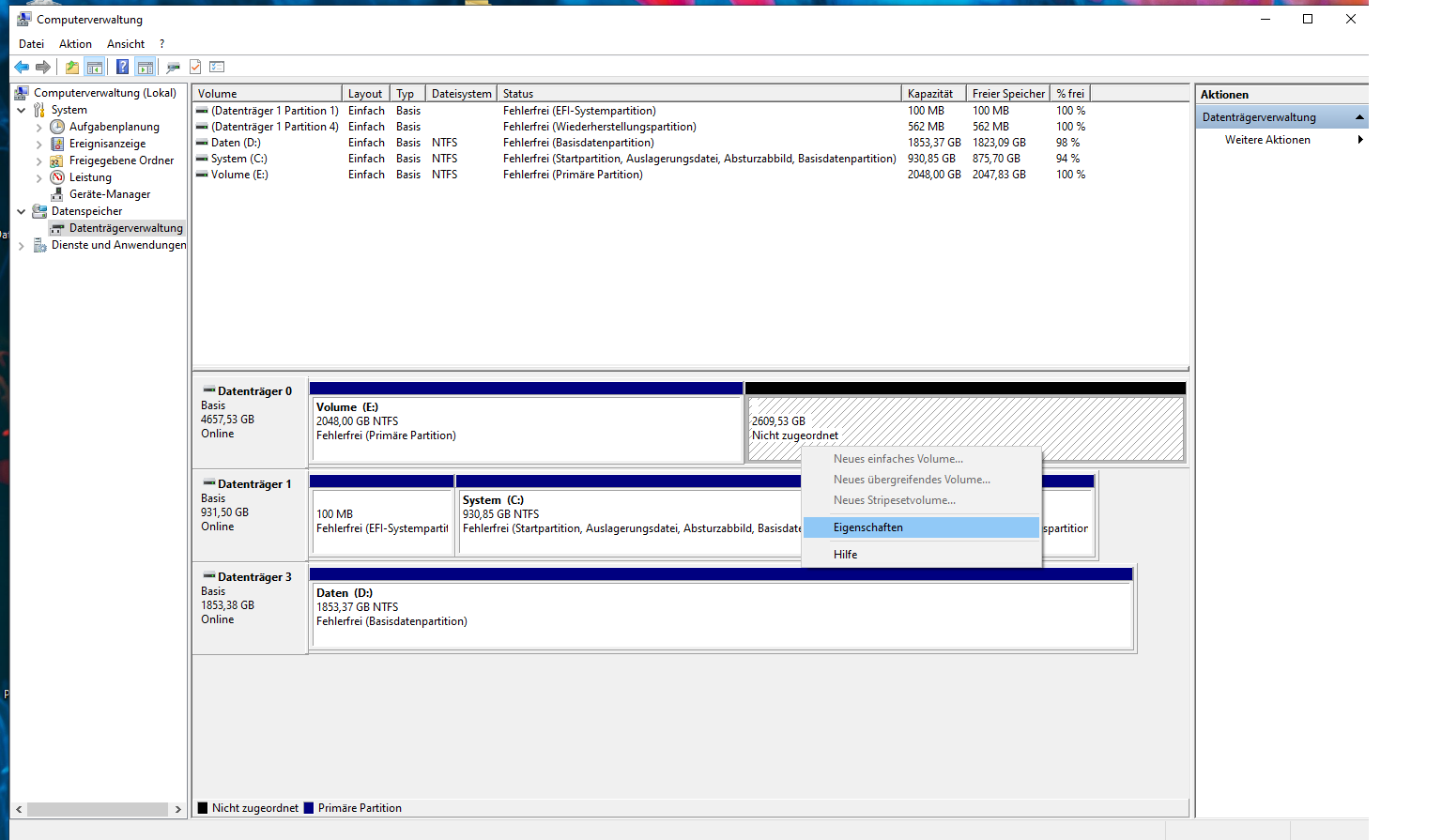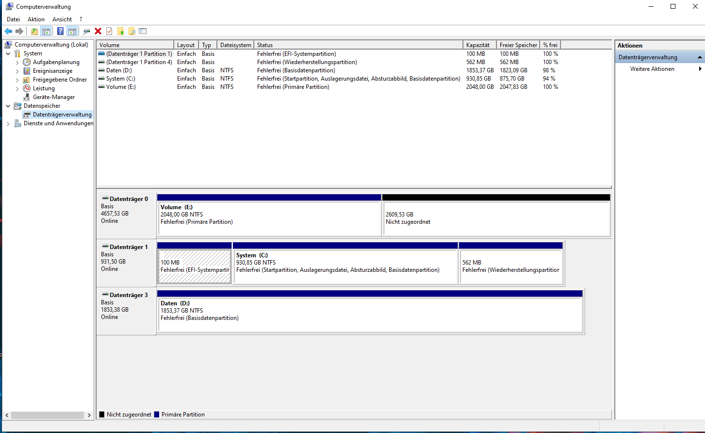 Die HDD war vorher als NTFS formatiert. Nachdem Einbau wurde mir die jetzt interne Festplatte nicht als sofort verfügbare Festplatte dargestellt. Ich musste diese erst initialisieren (hat vielleicht mit USB auf Satakabel etwas zu tuen?). Allerdings kann ich nur rund 2 TB initialisieren und der komplette andere Teil ist unantastbar. Ich kann das Volume weder vergrößern, formatieren oder anderes. Habe es über Windows - Datenträgerverwaltung und GParted probiert.