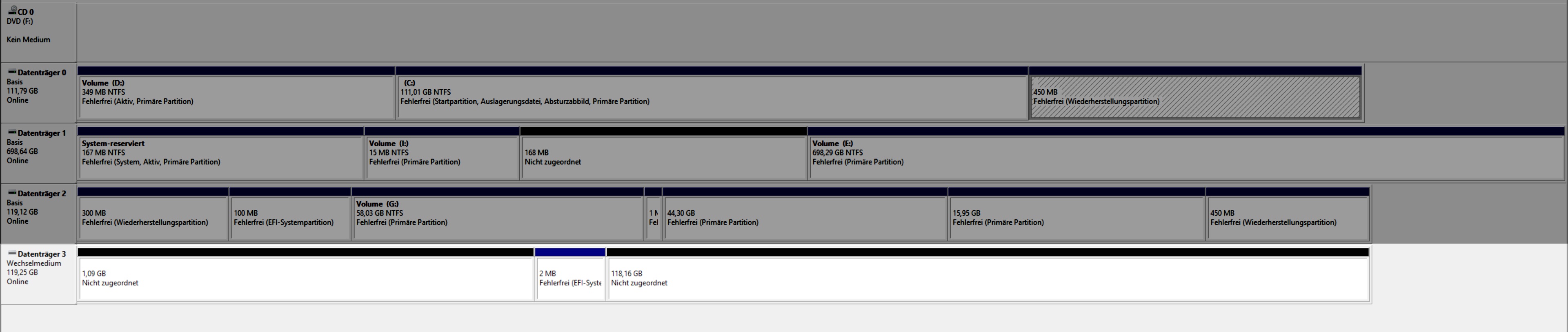 ich habe als zweites Betriebssystem Ubuntu auf meinem Pc installiert (auf eine 2. SSD) jedoch habe ich zum ersten mal booten einen USB Stick verwendet auf dem wichtige Daten waren und diese sind nun nicht mehr verfügbar da ich keinen Zugriff mehr auf die Partitionen habe (auch unter Windows). Siehe Screenshot