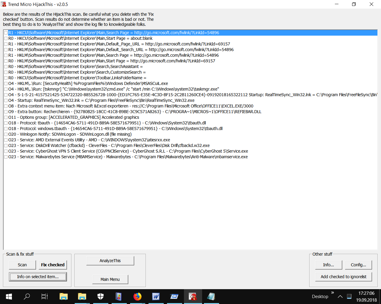 HiJackThis ist doch veraltet und funktionierte schon mit Windows 7 nicht mehr richtig, also kann man damit als Helfer auch nichts mehr richtig analysieren. Besser und zeitgemässer wäre da für den Helfer FRST: