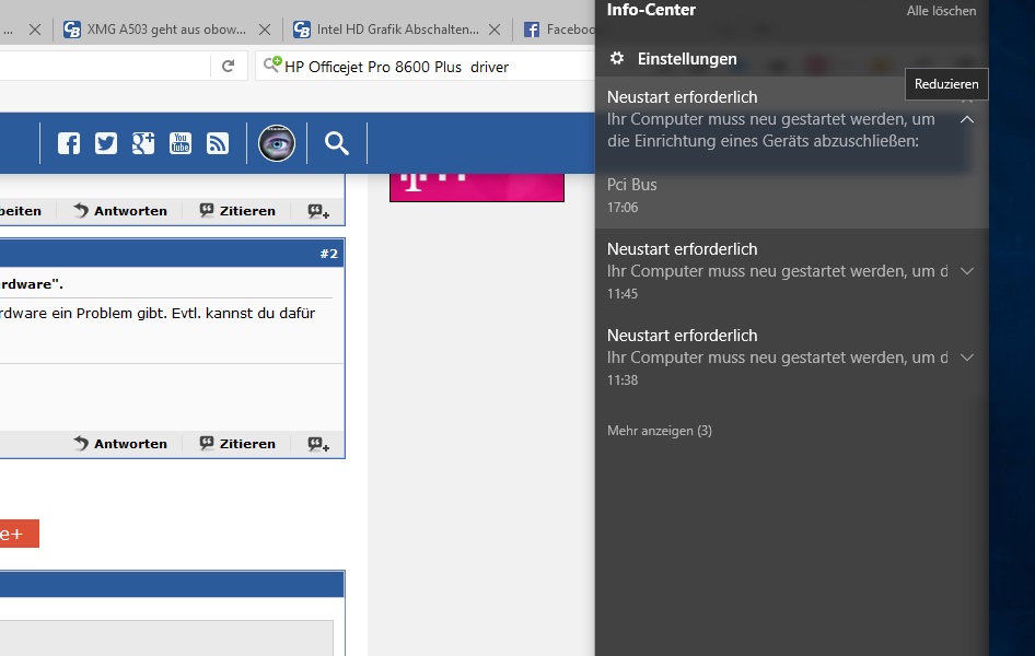 Was mich jedoch nervt ist, daß nach jedem Neustart die Meldung kommt, daß ich neu starten solle, wegen veränderter Hardware.