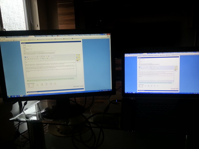 Gestern kam mein neuer TFT BenQ GL2450HM , per HDMI angedockt und nun schon etwas der Schock . Das weiße hier z.B im Forum wo ich gerade meinen Text verfasse ist eher so leicht dunkel weiß . Hier im Forum ist link und rechts alles blau , auf meinen Lappi ist das blau richtig geil Bunt Hell blau ,auf meinen TFT so verblasst blau .