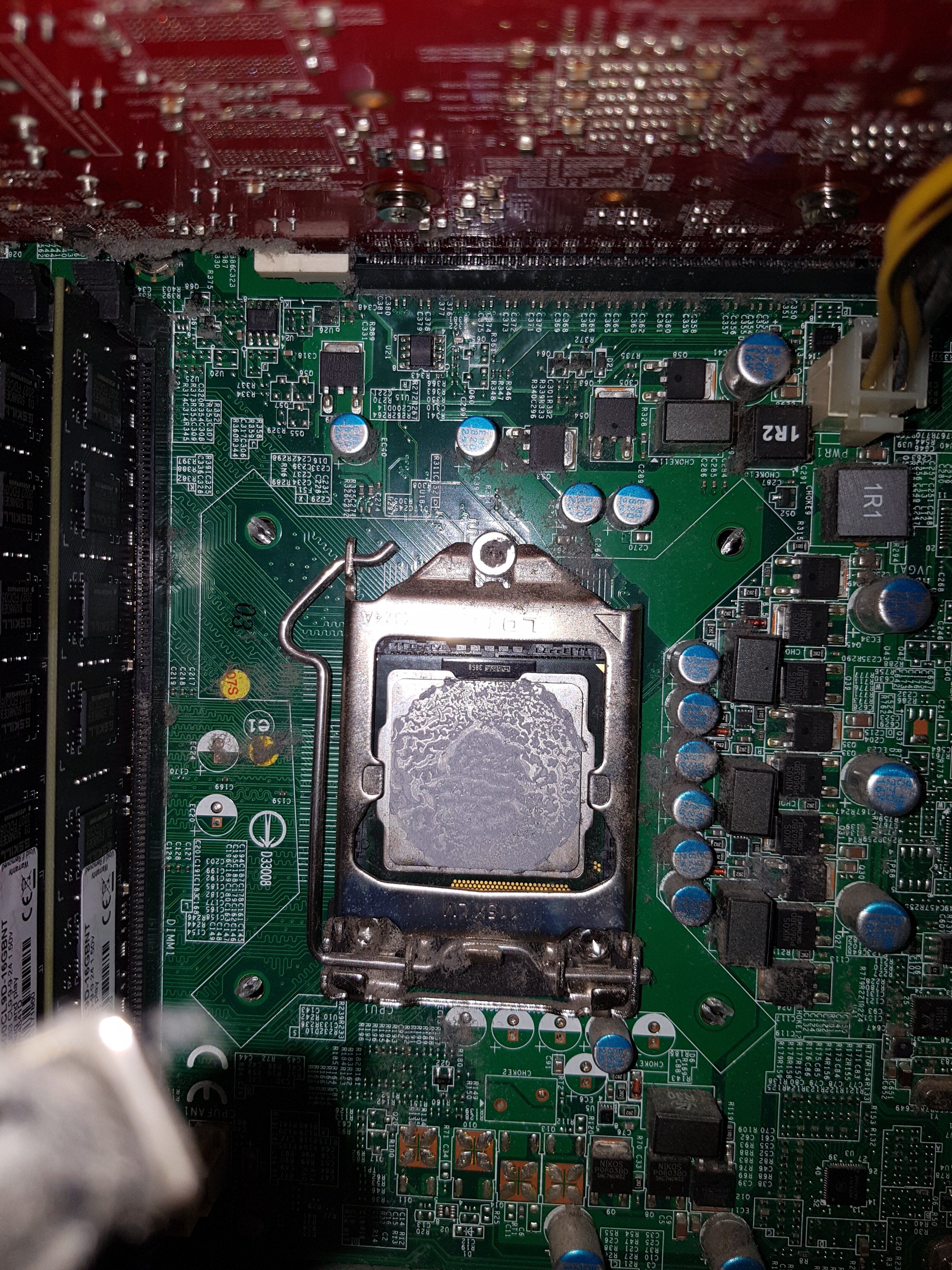 Die Lüfter-Verankerungen über der CPU scheinen auch an 2 der 4 Stellen gebrochen zu sein.