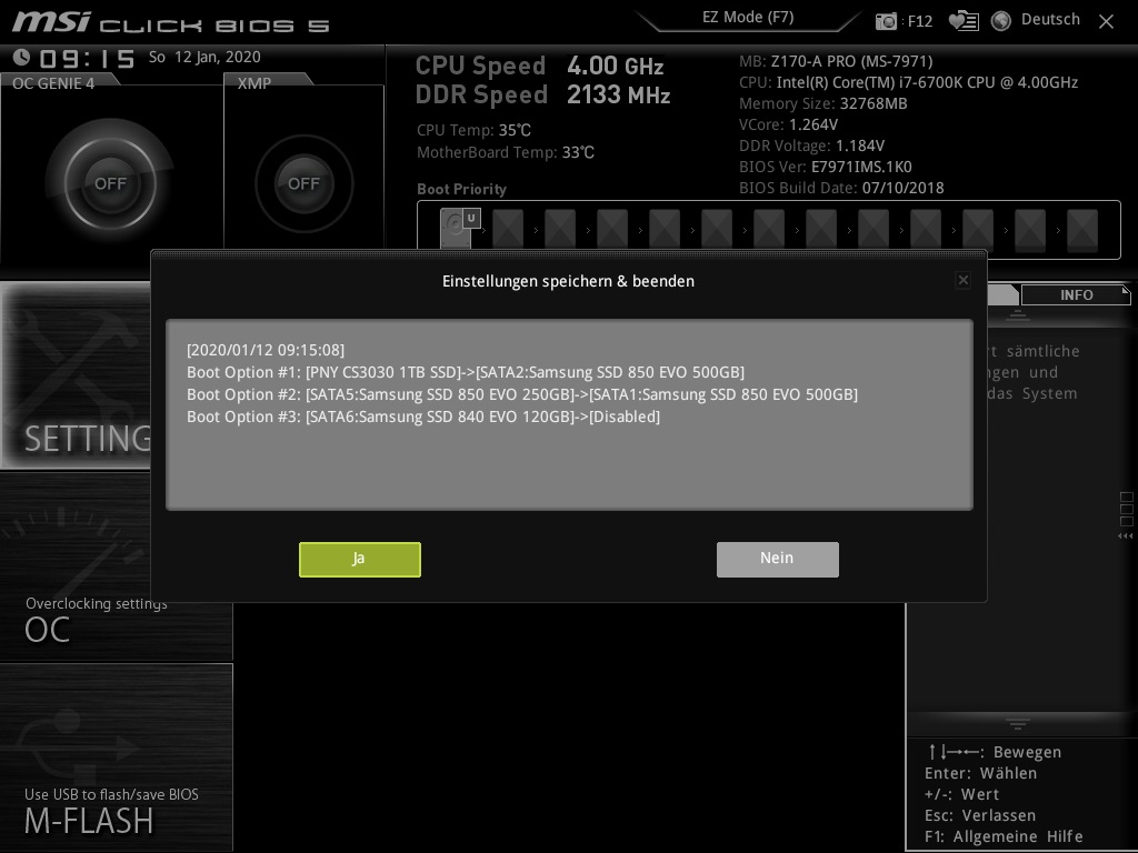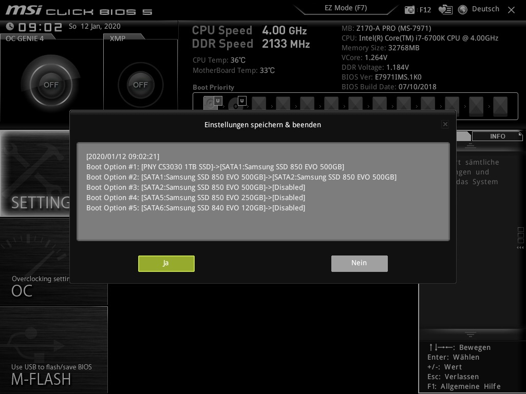Und wie du schon geschrieben hast soll man die 500er als First Boot Device auswählen. Ein Grund wieso ich mich von meiner zweiten 500er verabschieden werde. Sonst hab ich dort zwei 500er stehen und weiß nicht auf welcher es installiert wird.