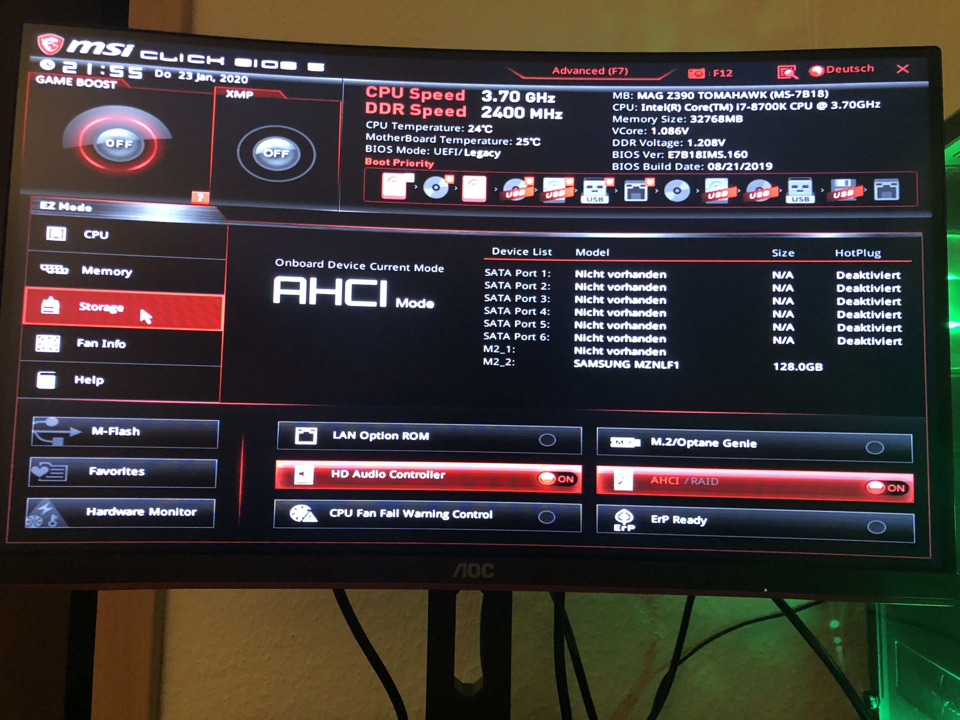 ich hab mein Mainboard tauschen lassen und hab jetzt ein Board von msi. Das Problem jedoch ist es wird nur eine Festplatte erkannt und das ist die C. Alle stromanschlüsse sind angeschlossen wahrscheinlich muss ich da was im Bios einstellen aber ich weiß nicht wie.. ich hoffe ihr könnt mir da weiterhelfen.