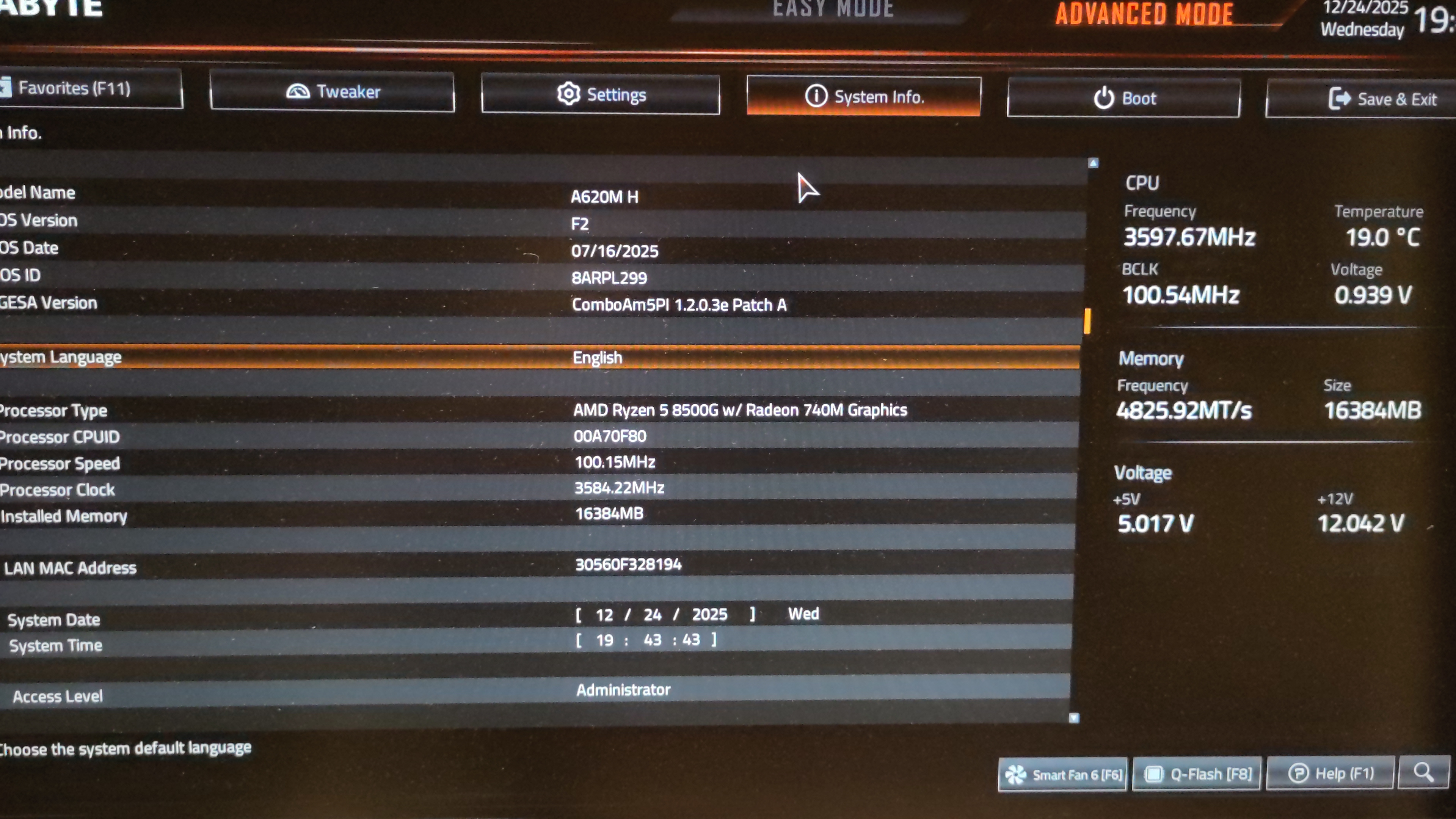 Mainboard: Gigabyte A620M H