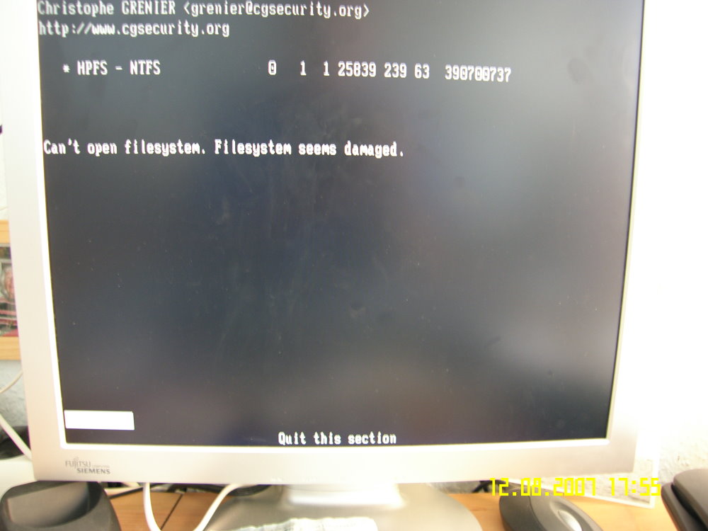 Beim Start vom PC klappte es jedoch nicht. Er brach das Ganze ab.