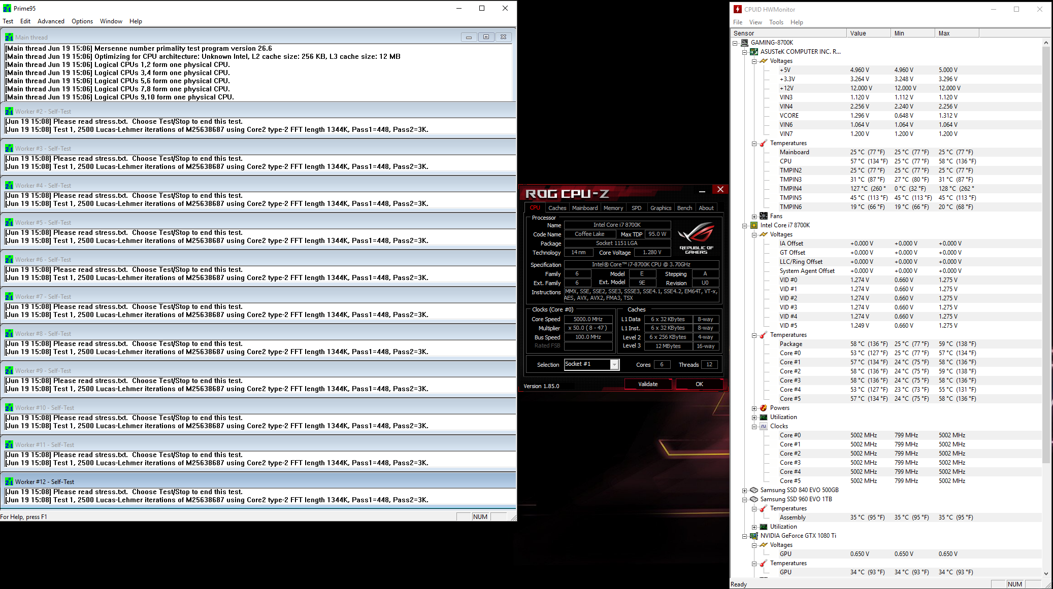 Hier die Fotos, wobei das Ganze jetzt mit Prime95 getestet wurde (diese Last liegt niemals ingame an) und die TEMPIN4 liest falsch aus, ist bekannt in anderen Foren.