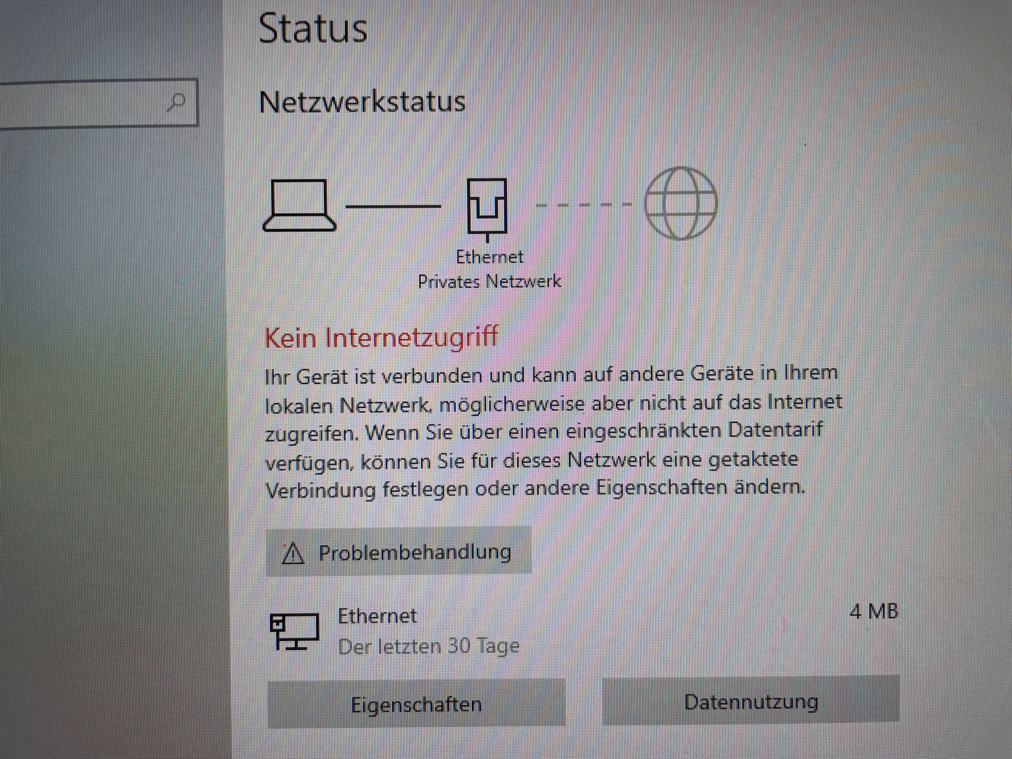 Nach vielfachen versuchen wird mein Ethernet aber immernoch nicht erkannt.
