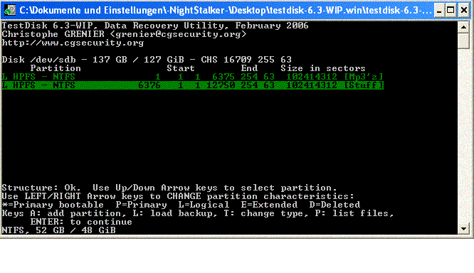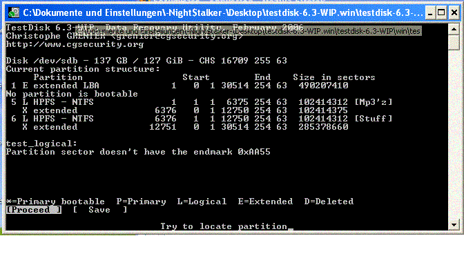 so nun mein problem, nachdem ich windows neu installiert habe konnte ich nicht mehr auf meine F: Partition zugreifen, nach einem Neustart war die Partition verschwunden, mit PM 8.0 habe ich "undelete" versucht doch es hat nicht geklappt, mit testdisk habe ich es auch probiert, doch da kenn ich mich nicht so aus mit, danach habe ch versucht mit pc inspector etwas zu finden und ich fand ein paar dateien meiner F: Partition...