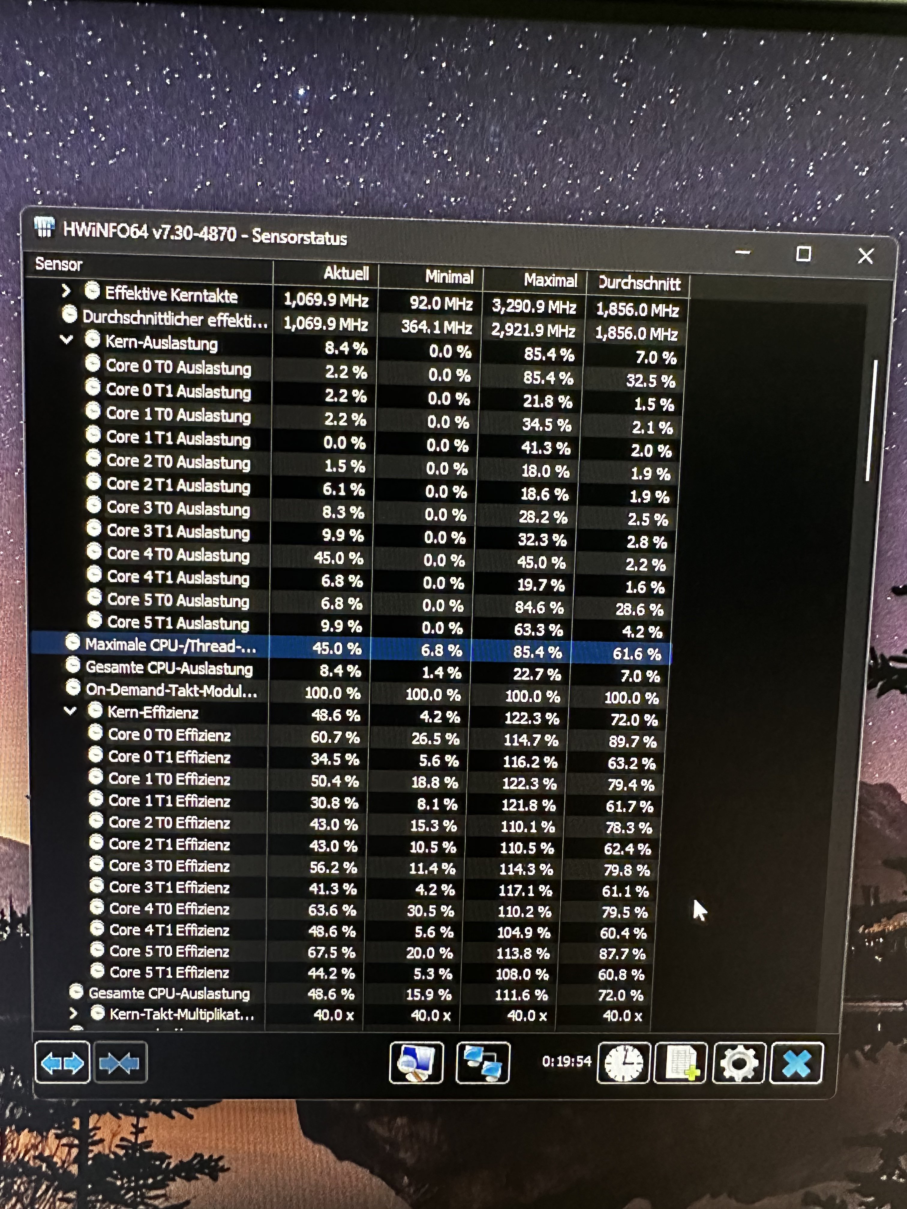 Gibt auch noch mehr Sensordaten in HWiNFO, die interessant wären im Zusammenhang. Da ist rechts ein Scrollbalken.