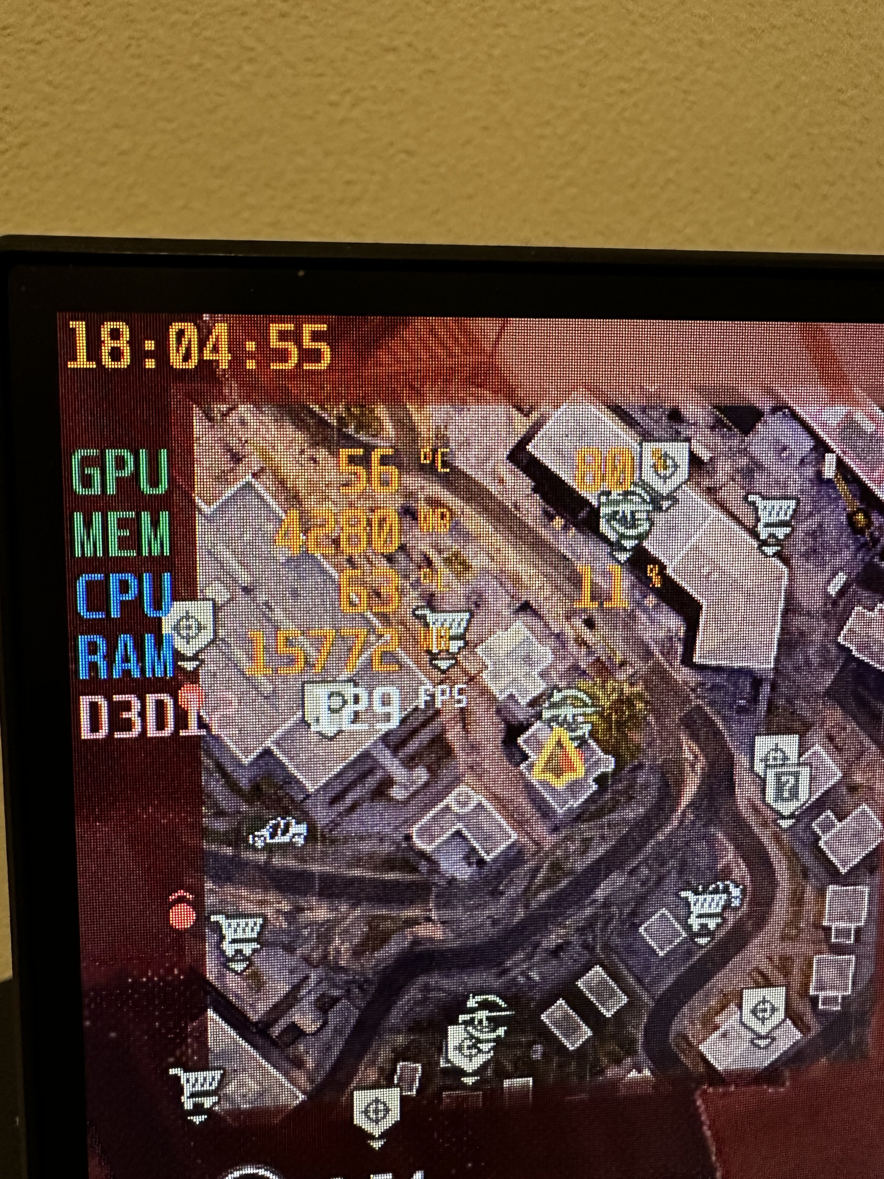 Dazu müsstest du das OSD vom Afterburner einrichten und dann in Games anzeigen lassen.ndeboss schrieb:Ja nu evt. muss ich eh mal einen besseren Kaufen als i5 10400F der kommt bei warzone bei 60-70% Last mit ne 3070 oder reicht das