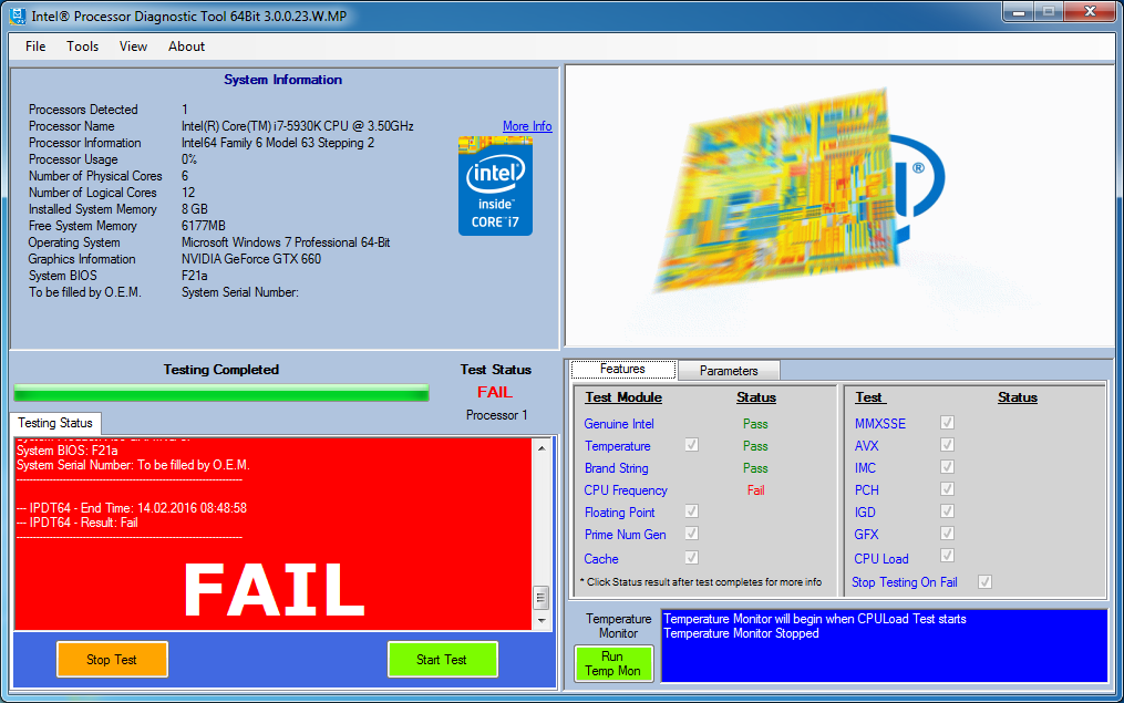Nun habe ich das Tool "IntelProcessor Diagnostic Tool 64bit" durchlaufen lassen und ein FAIL erhalten.