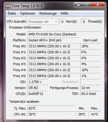 Prozessor: 6x 3.3 GHz AMD AM3+ FX-6100