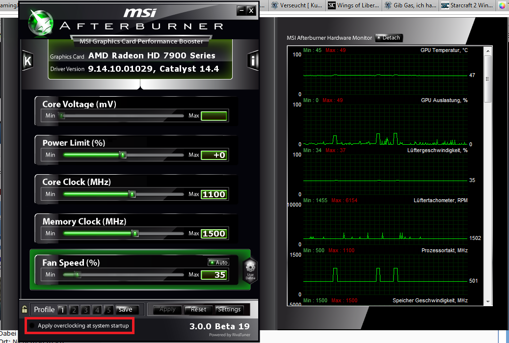 Nach dem Neustart meines Systems muss ich immer wieder die Karte übertakten.
