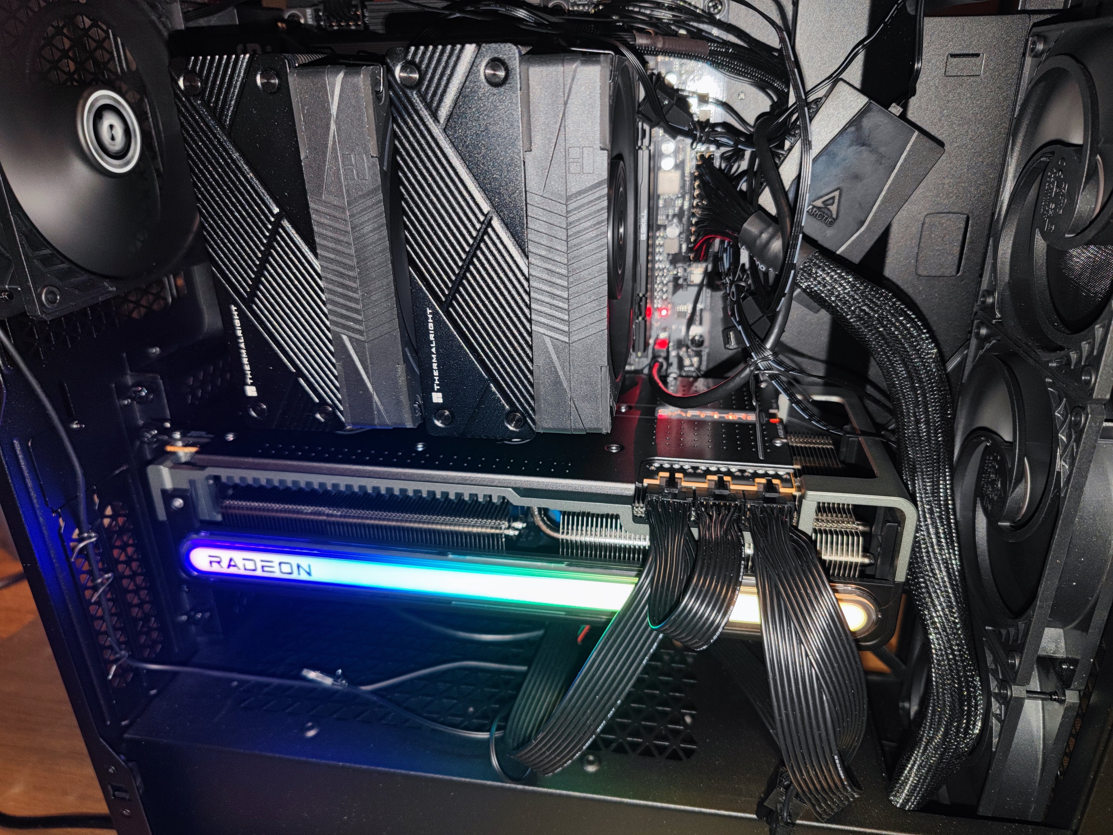 Neues Update, hab jetzt alles wieder zusammengebaut nur leuchtet leider noch immer die vga led rot. Die gpu sollte aber strom bekommen(zumindest die Beleuchtung geht an). Gpu lüfter gehen auch an.