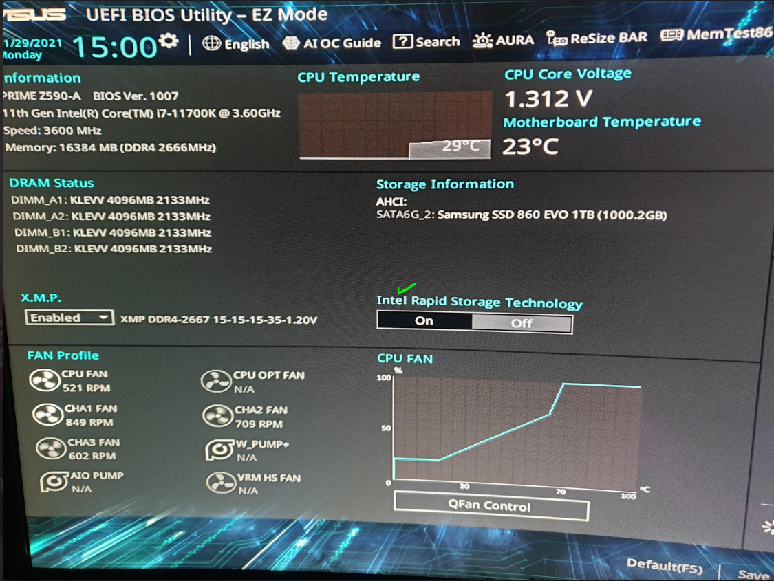 Ich habe alle Settings im Bios gesetzt und Windows neuinstalliert.