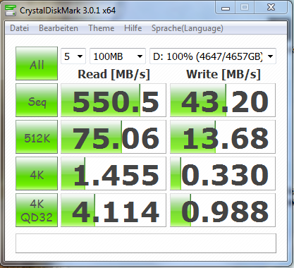 2. Schreib/Leseperformance nicht wirklich berauschend (siehe Anhänge). Einzig der seq. Lesewert ist beim 100MB interessant, die anderen Werte sind eher traurig.