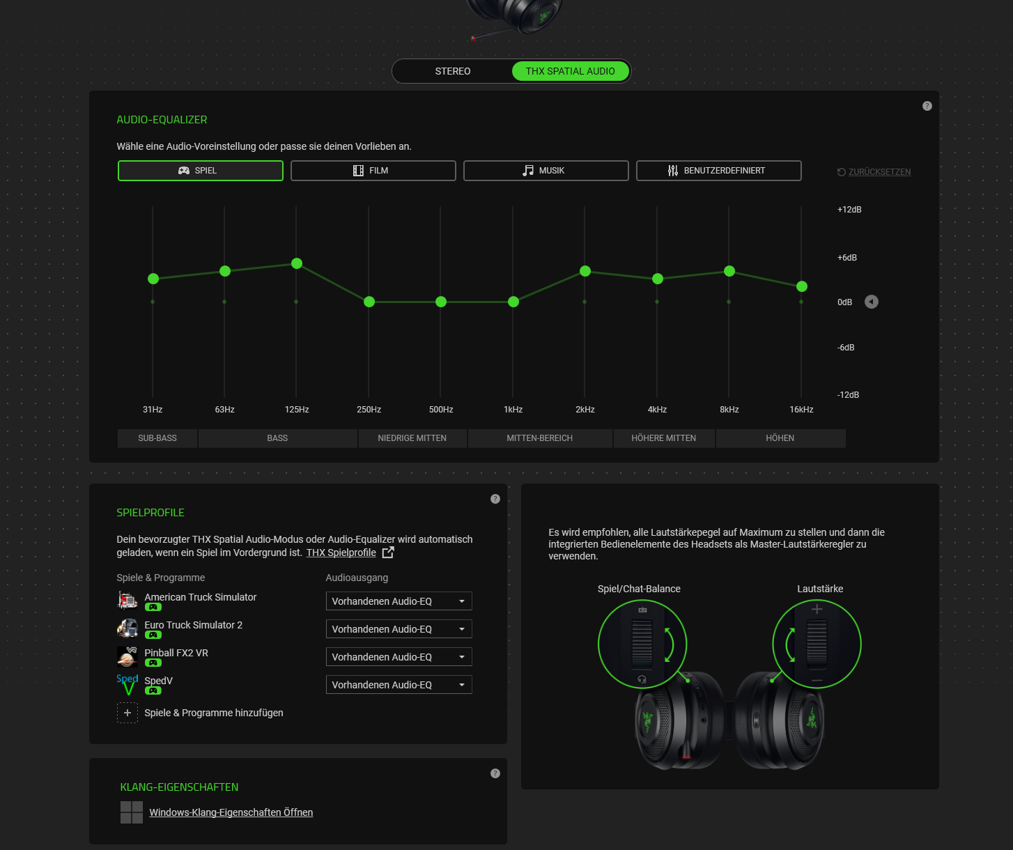 ich habe heute ein Razer Synapse update gemacht. Und seit dem ist unter WIndows Soundoption mein Razer Nari 7.1 (THX) nur noch als Razer Nari Game 2.0 vorhanden. Ich habe auch keine möglichkeit das wieder zu bekommen. Ich habe die Software schon mehrmals deinstalliert/installiert. Das hört sich jetzt unter Windows natürlich so richtig sche**** an . Nach dem Update sieht das Audio Menü von Razer so aus