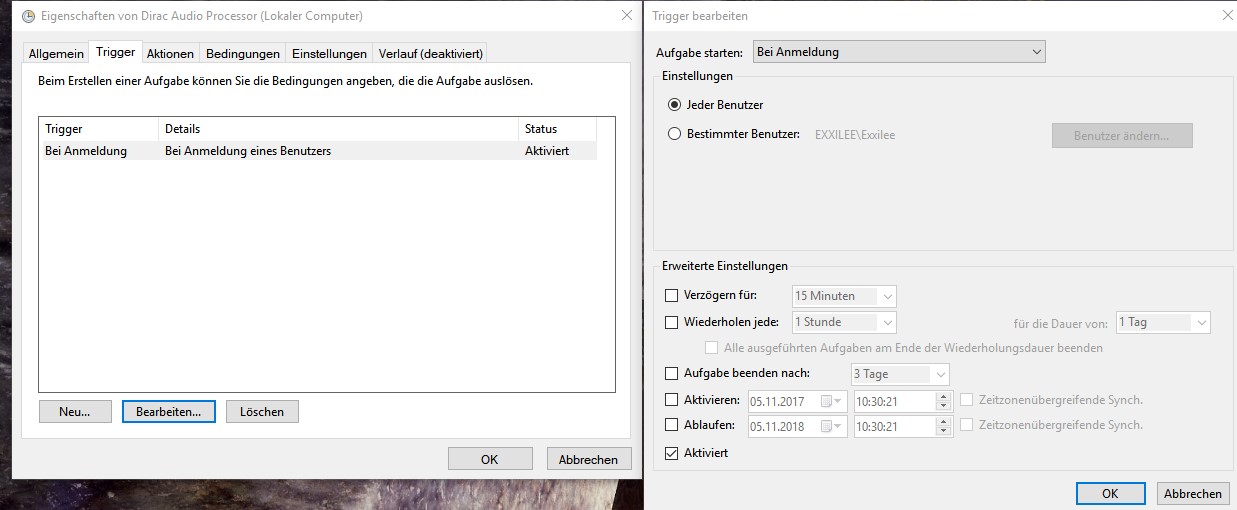 Wenn ich die Aufgaben nun alle aktiviere und mich als Benutzer abmelde und wieder anmelde, starten alle Programme. Nach einem Neustart des Rechners sind alle wieder deaktiviert.