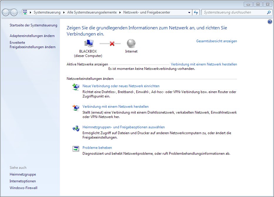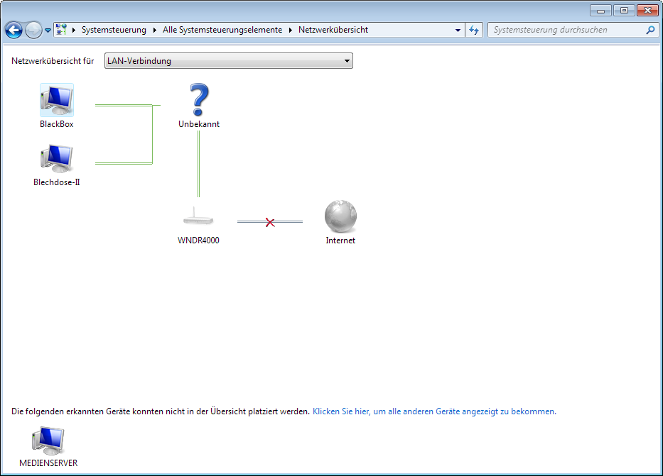 Mein Problem: wir sind umgezogen und haben dabei auch den Provider gewechselt (zu UnityMedia), was einen neuen Router mit sich brachte (exakt: Modem CISCO EPC 3208 plus separatem Router NETGEAR N750). Von meinen 2 PCs spielt einer jetzt verrückt, denn ich bekomme zwar Zugriff auf meine Netzwerkumgebung (NAS, anderer PC) & Internet, aber das Symbol im Systemtray ist rot durchgestrichen und als "nicht verbunden" ausgewiesen. Die Netzlaufwerke auf der NAS sind auch rot durchgekreuzt, werden aber verbunden sobald ich draufklicke.