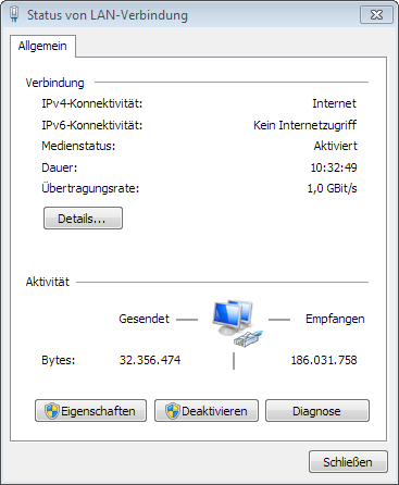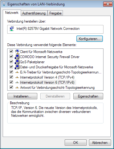 System: PC mit i7-2600k Chip; Win7 Ultimate 64 bit, 2 LAN Adapter (Intel 82579V bzw. Realtek PCIe GBE Family Controller)