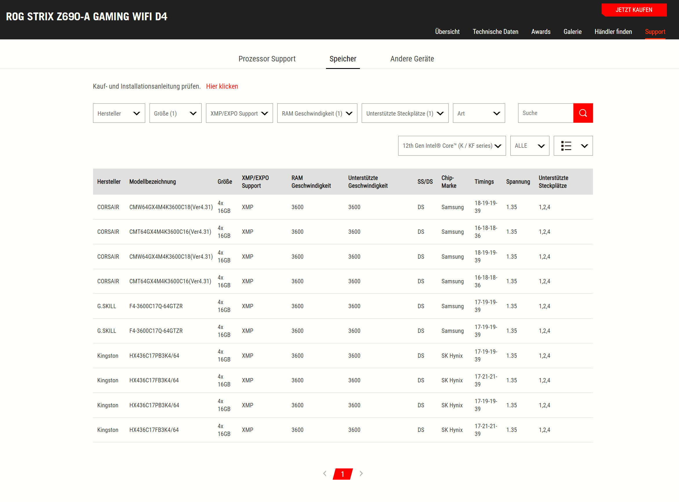 ich tauschte den "DDR4 32 GB GSkill 4700Mhz 2 Module" in "Corsair in Corsair DIMM 64 GB DDR4-3600 (4x 16 GB) Quad-Kit".