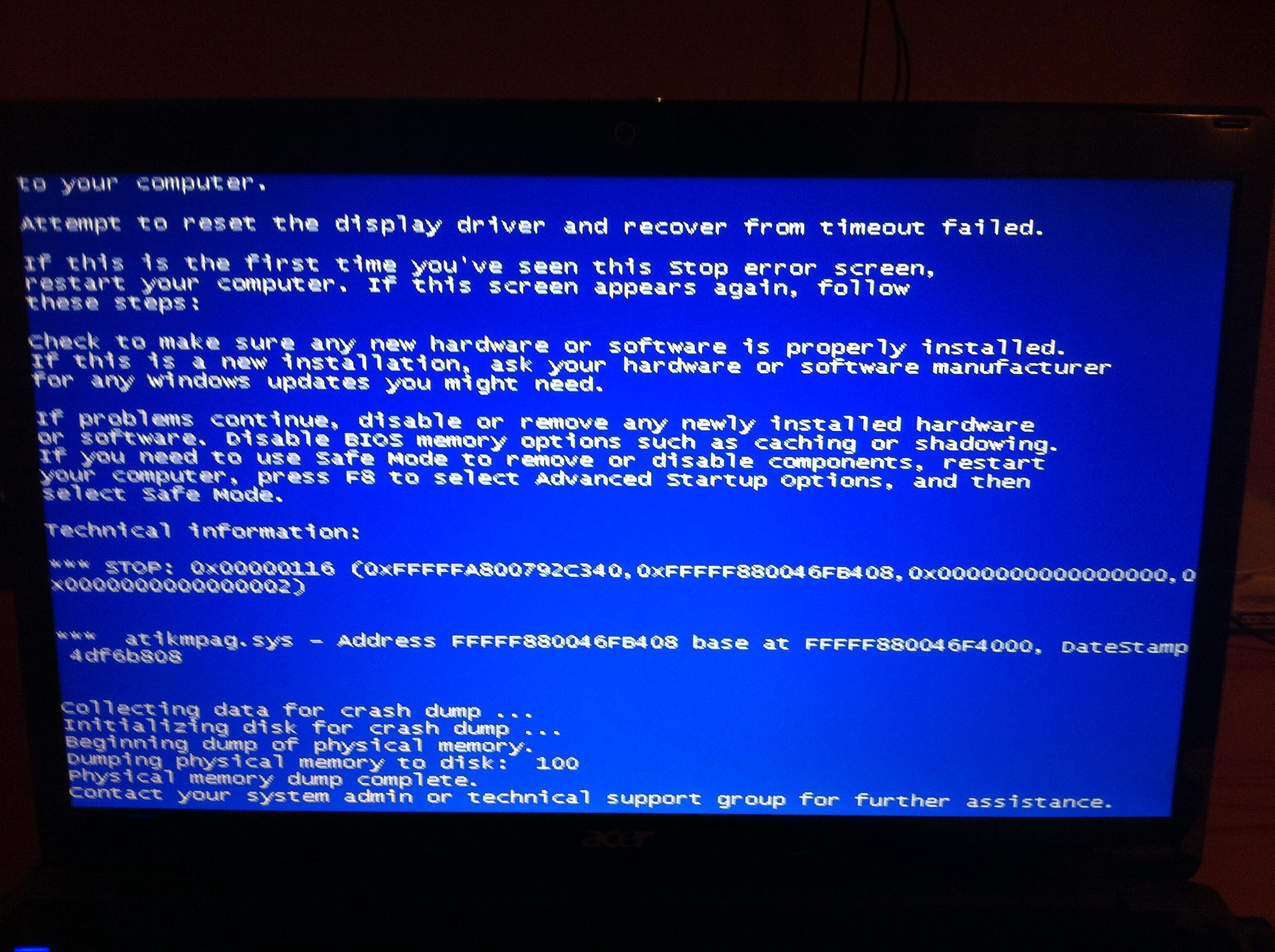 Auf der Acer Homepage gibt es 3 verschiedene Grafiktreiber vom Hersteller selber, nun installiere ich die beiden ältesten, fährt mein Rechner hoch, jedoch bleibt mein Display schwarz nur der Windows Sound ist höhrbar. Beim neuesten Treiber, bekomme ich einen Bluescreen und leider nicht erkennbar wieso, aber scheint was mit ati da zu stehen.