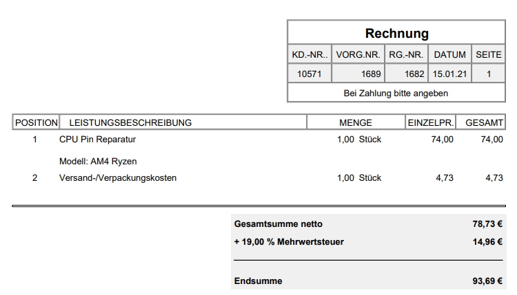 Stand sicher auch so auf der Rechnung bzw Reparatur Protokoll.